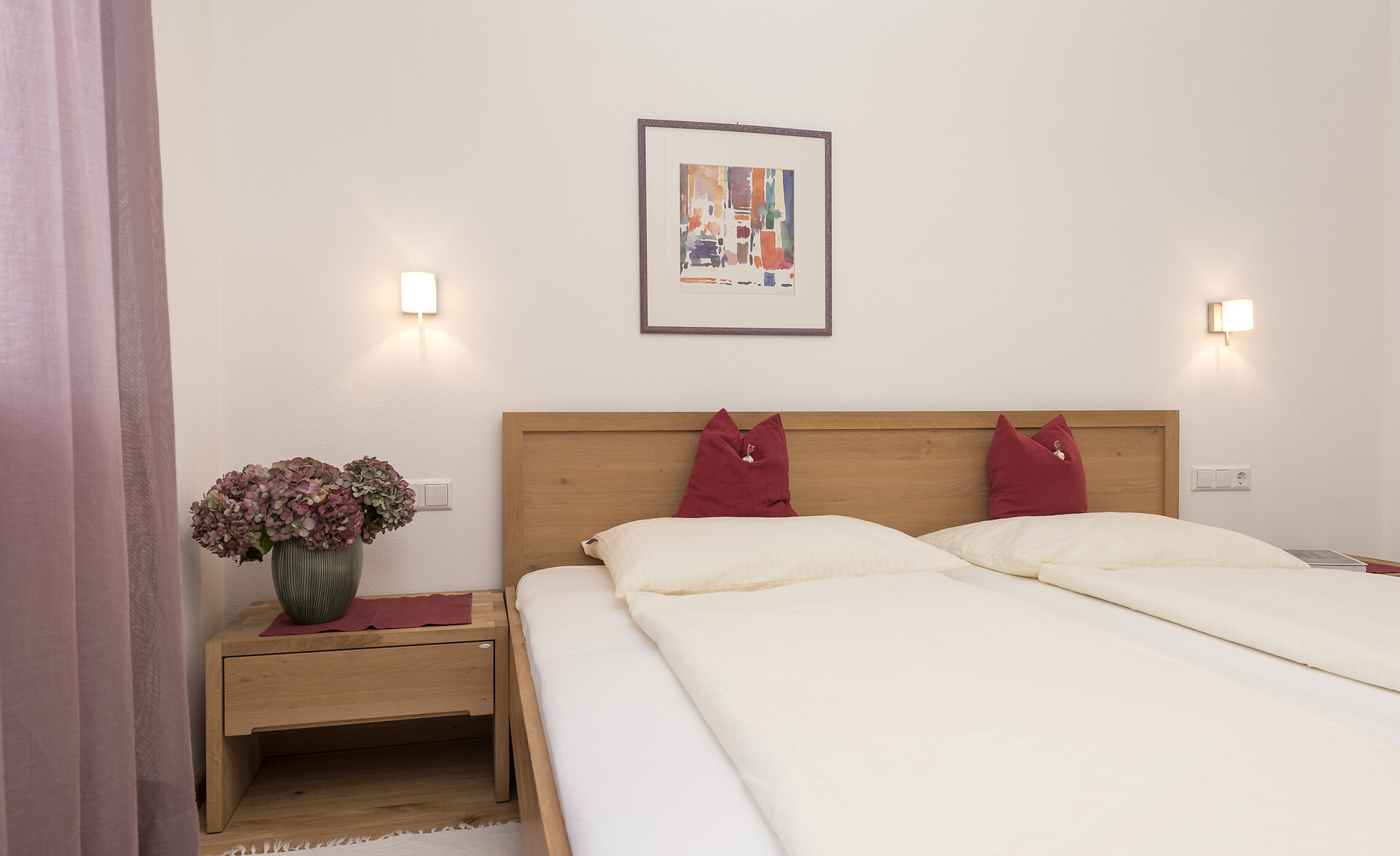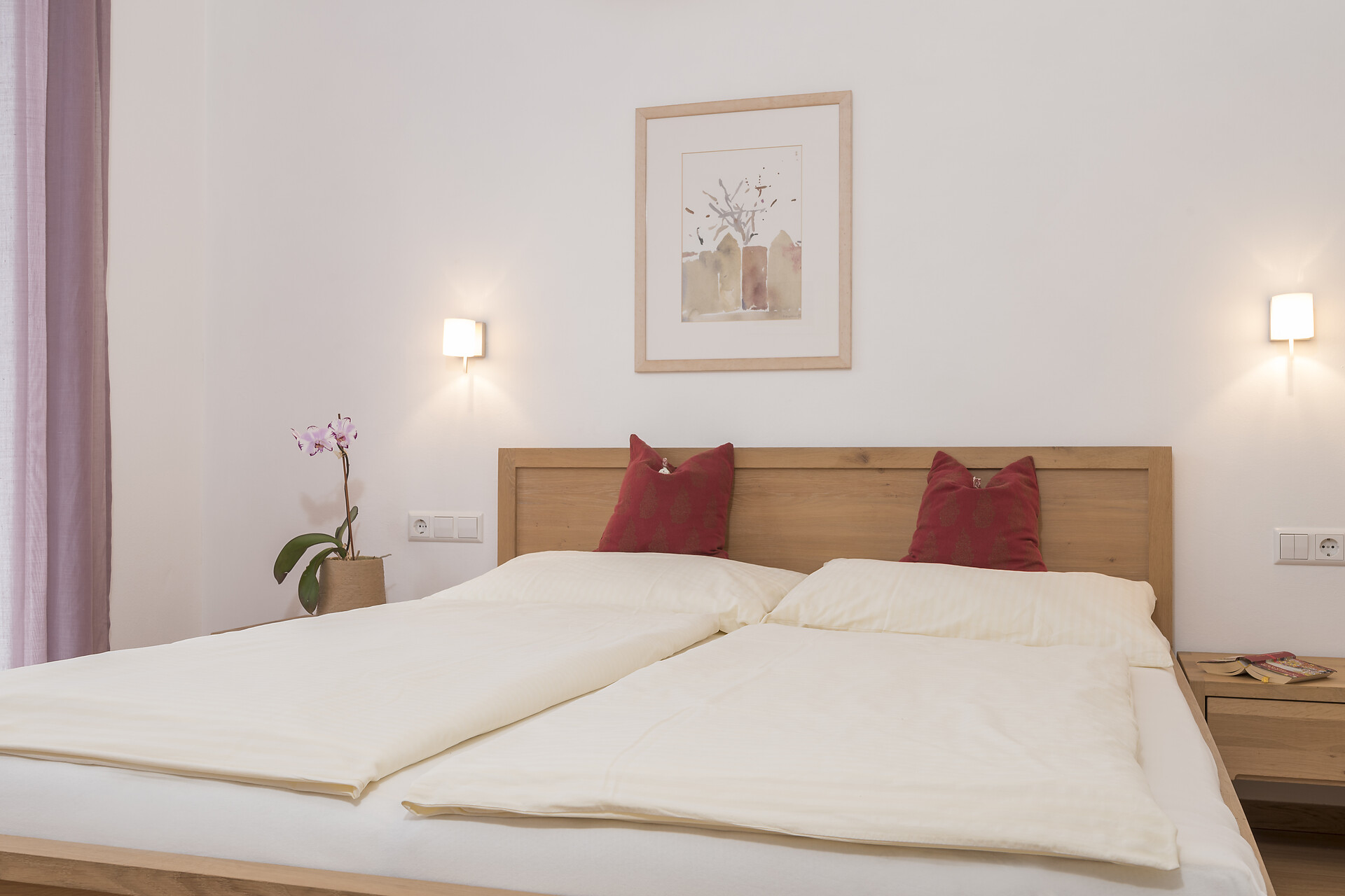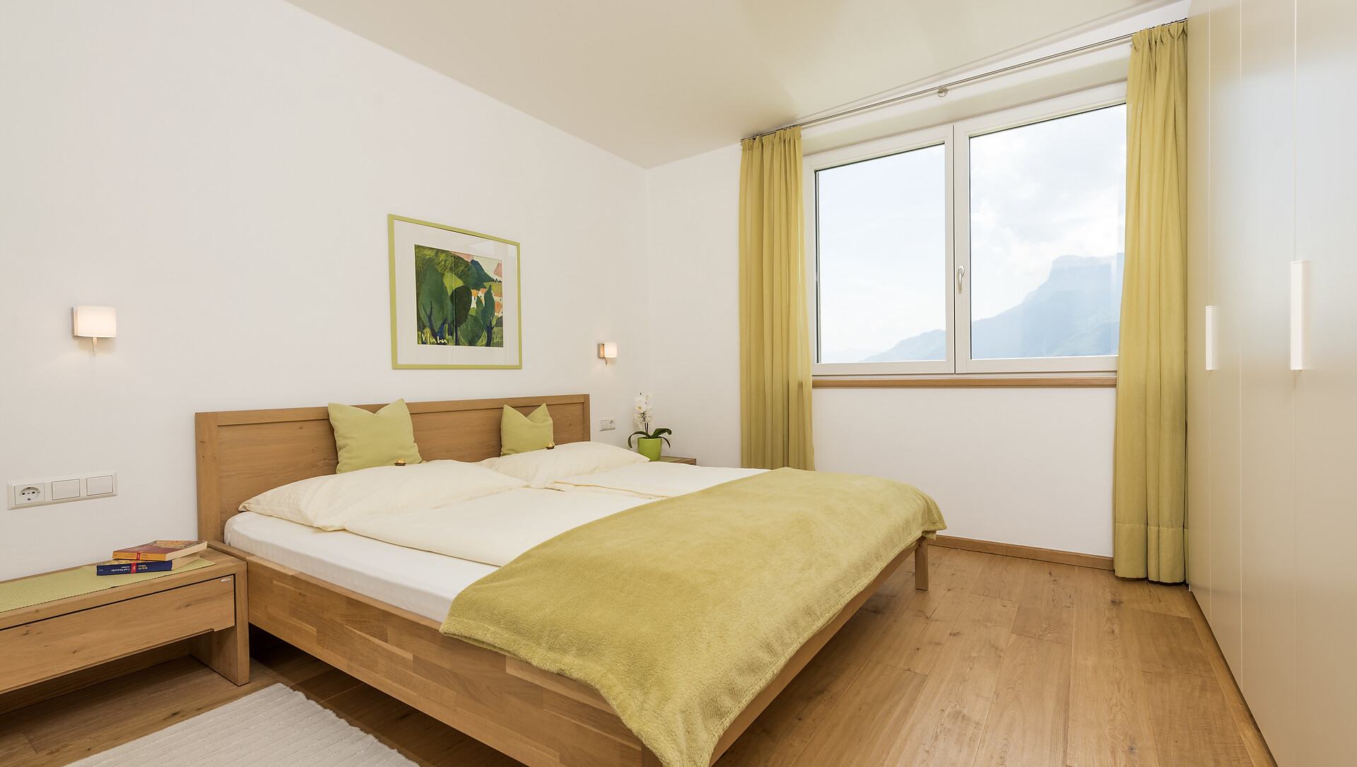 Unsere Wohnung GRÜN verfügt über eine großzügige Wohnküche mit ausziehbarer Couch (210 cm breit), ein komfortables Doppelzimmer mit Blick auf das Etschtal und die umliegenden Berge, ein Badezimmer mit Dusche und WC sowie einem großen sonnigen Balkon (14 m²). Die baubiologischen Oberflächen bieten höchste Wohnqualität und die mit viel Liebe zum Detail ausgestattete Wohnung höchsten Wohnkomfort: hochwertige Matratzen, Spülmaschine, Kaffeemaschine, Toaster, Wasserkocher, Stabmixer, Föhn, TV mit SAT Anschluss, Radio mit CD-Player, W-LAN Verbindung, Soda Stream. Die Wohnung liegt im 1. Stock und ist eine Nichtraucherwohnung. Inbegriffen im Preis sind die Heizung im Winter, im Sommer die klimatisierten Fußböden, Strom, Internet, Granderwasser (www.grander.com), Bettwäsche, Geschirr- und Handtücher sowie die Endreinigung. Für Autos steht ein überdachter Parkplatz zur Verfügung. Die Liegewiese bietet einen optimalen Ort zum Entspannen, dazu stehen Liegestühle und Sonnenschirme zu Verfügung. Es gibt die Möglichkeit sich die Zeit mit Tischfußball, Tischtennis od
