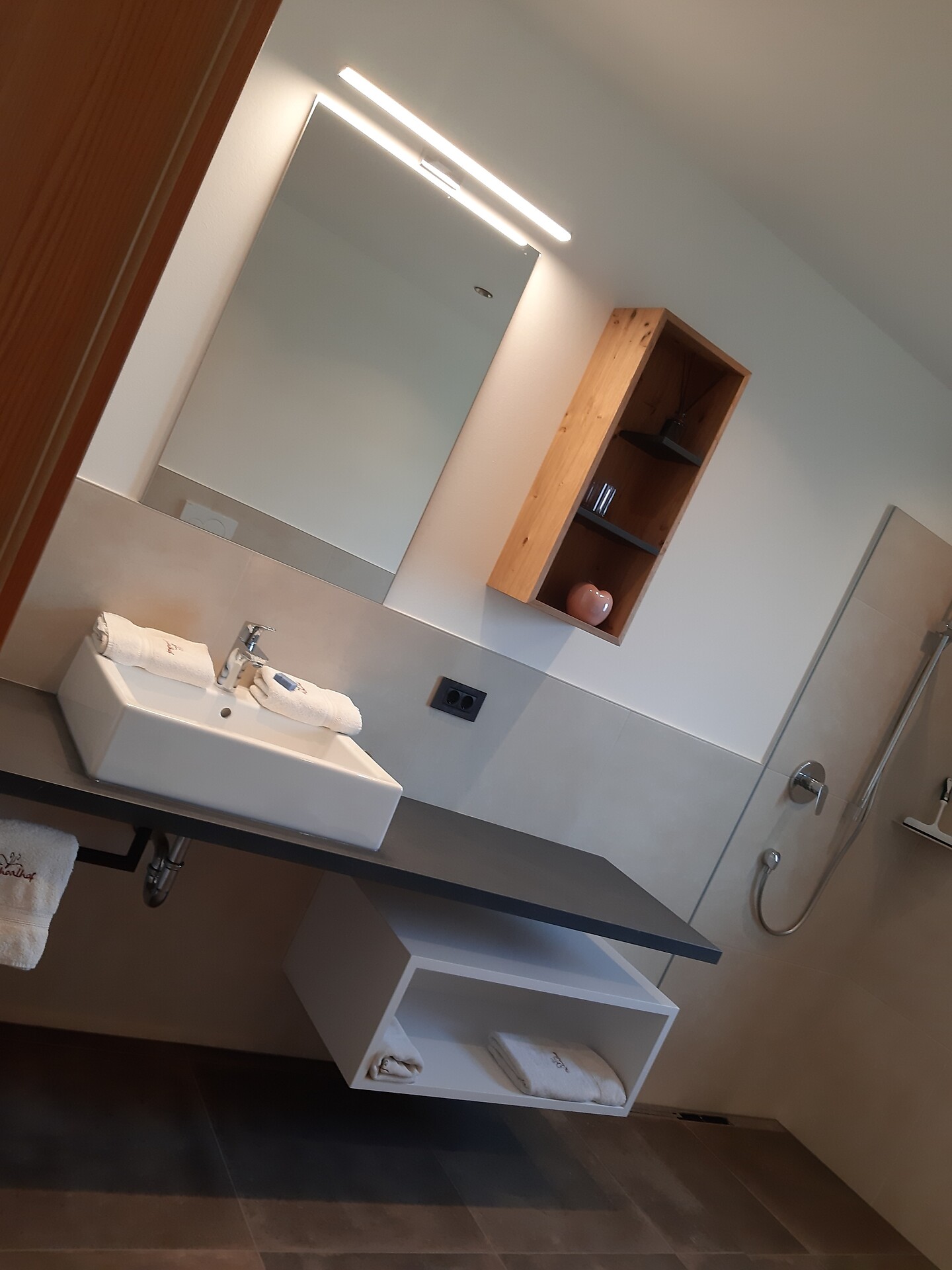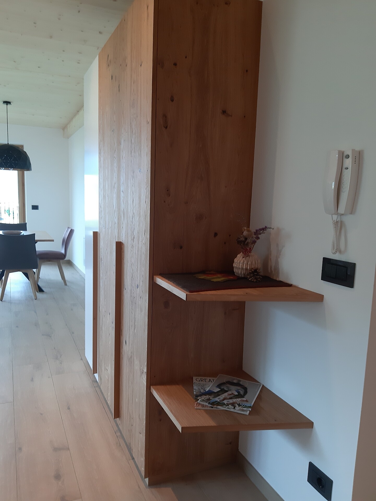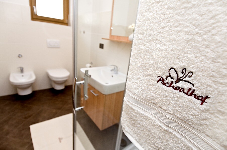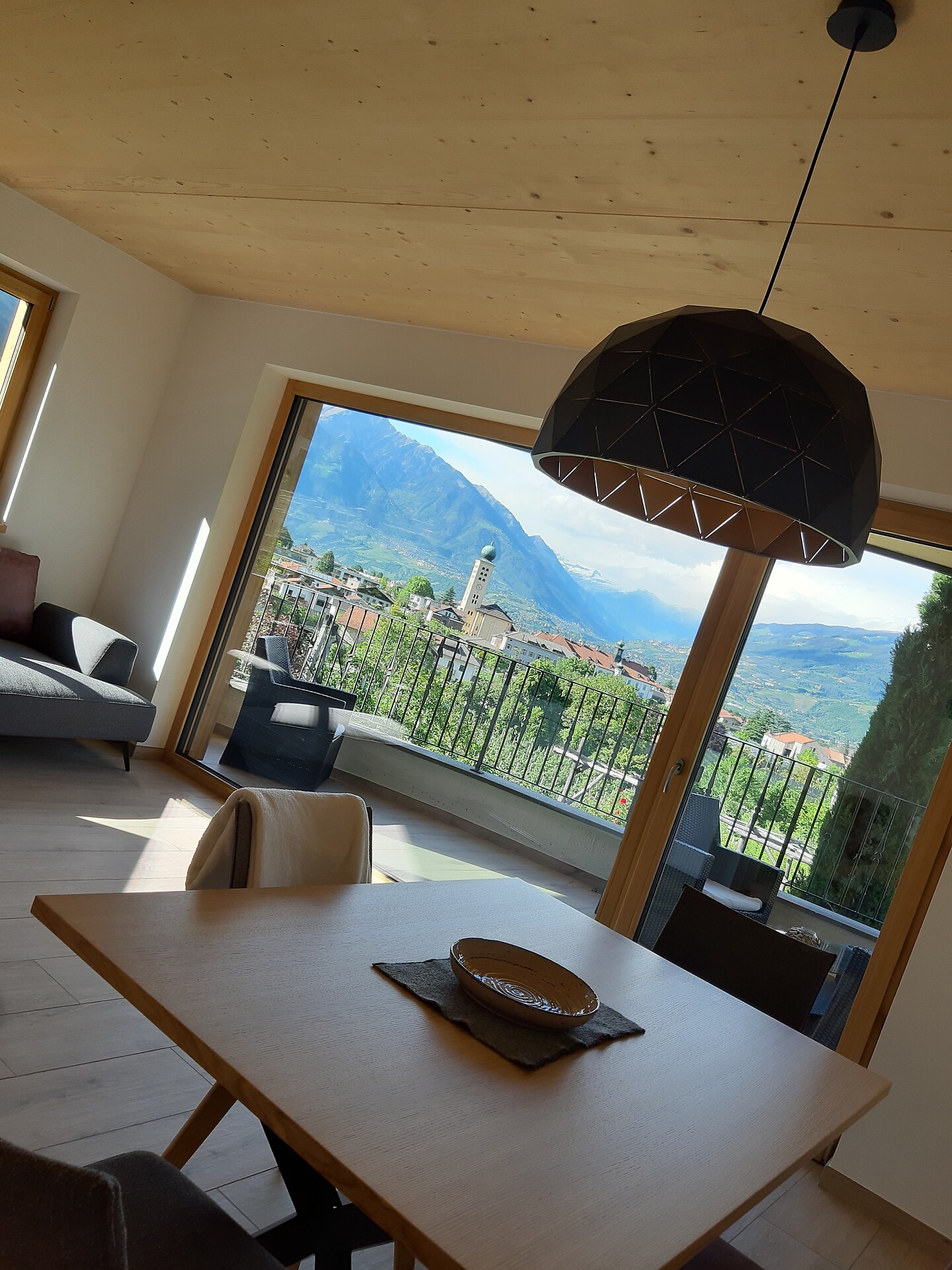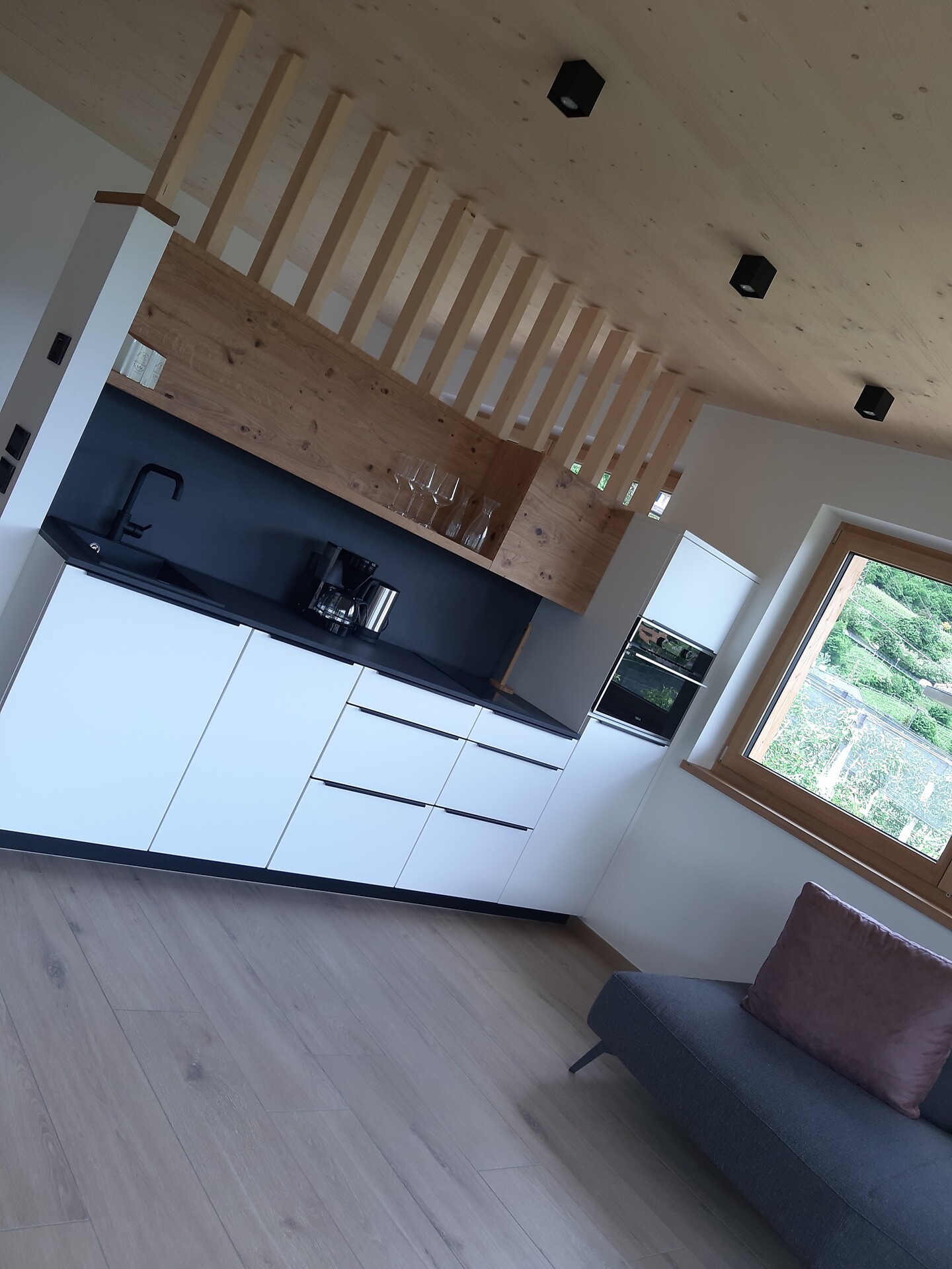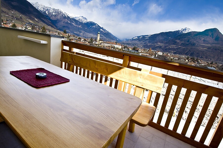 Die neue Kastanie wurde in Holzbau angebaut- die Wohnung besteht aus einem grossen Badezimmer mit WC,Bidet,Dusche und Wascbecken, und einem offenem Schlafzimmer welches nur durch Holzbalken zum Wohnbzw Essraum und Küche abgteilt ist. Ein grosszügiges offenes Studio mit riesigem Panoramafensterund schönem Balkon mit Wahnsinnsblick auf die Kreuzkirche und die umliegenden Berge.