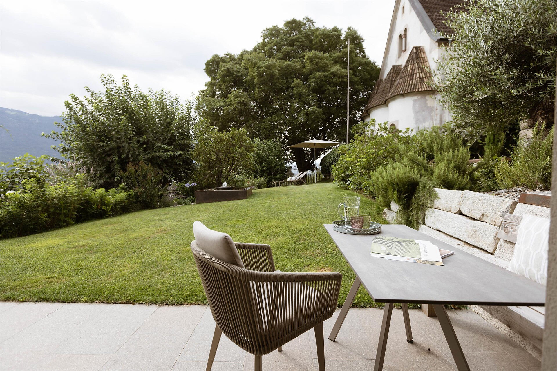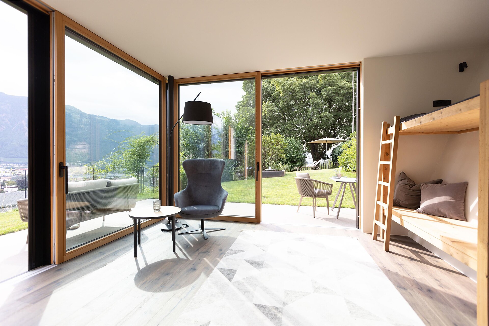 Küche und einer umlaufenden Terrasse mit direktem Gartenzugang. 1