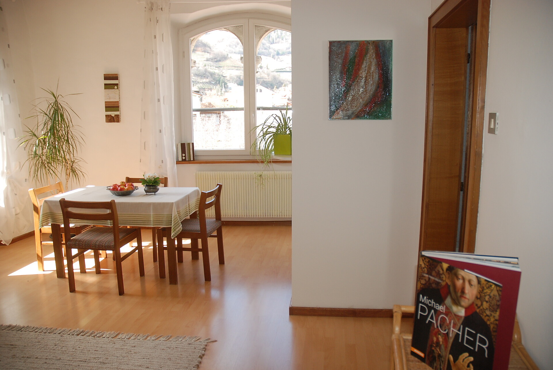 Wählen Sie aus zwischen dem Apartment "Goldblick" im ersten Stock mit sonnigem Erker und Blick auf das Umland, das Kirchlein St. Peter und das Kloster Lanegg oder wählen Sie das märchenhaft romantische "Marchese" mit direktem Zugang vom Innenhof des mittelalterlichen Ansitzes "Goldegg" oder das Apartment "Castel" strahlend hell mit den großen Bogenfenstern.