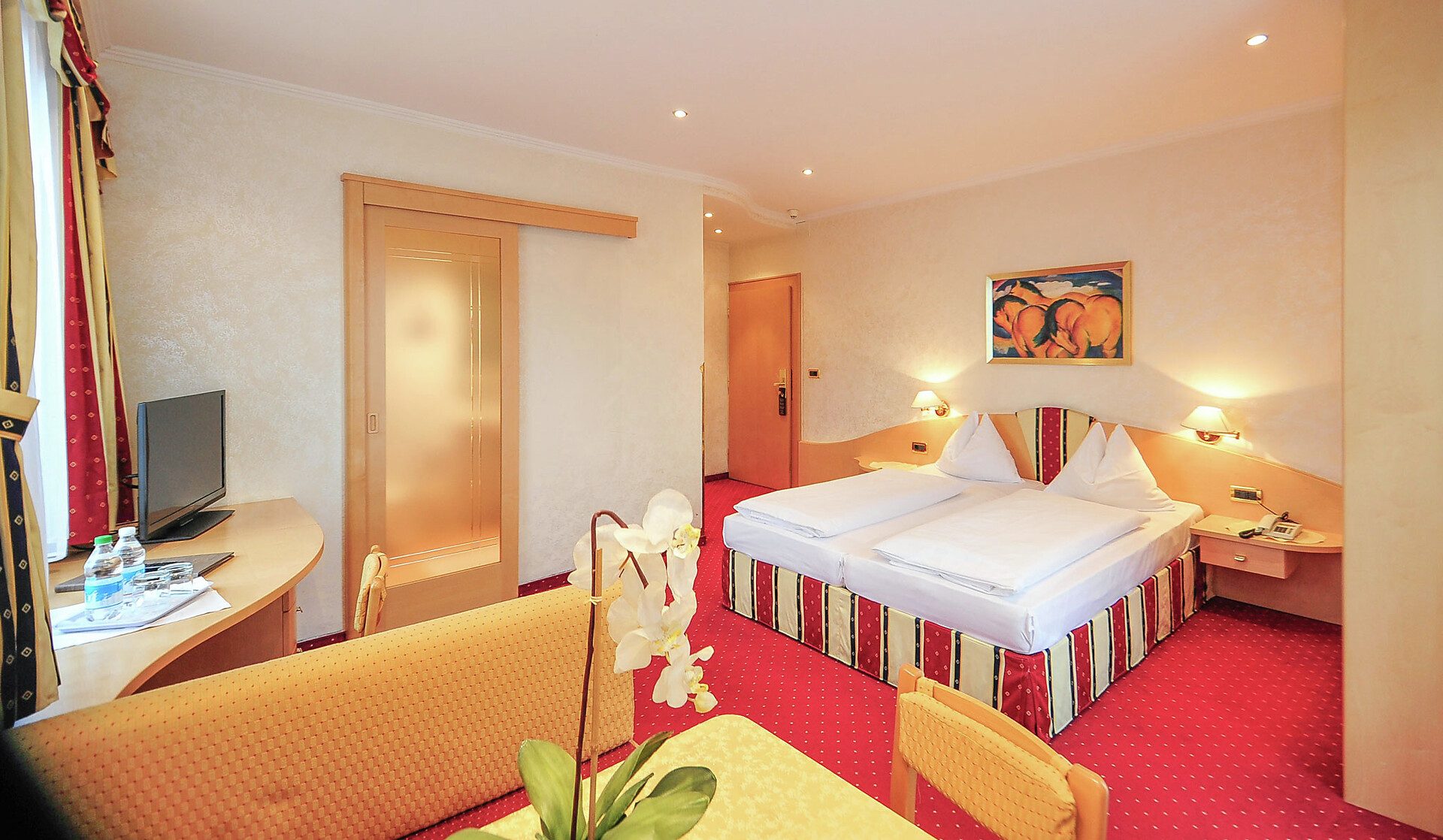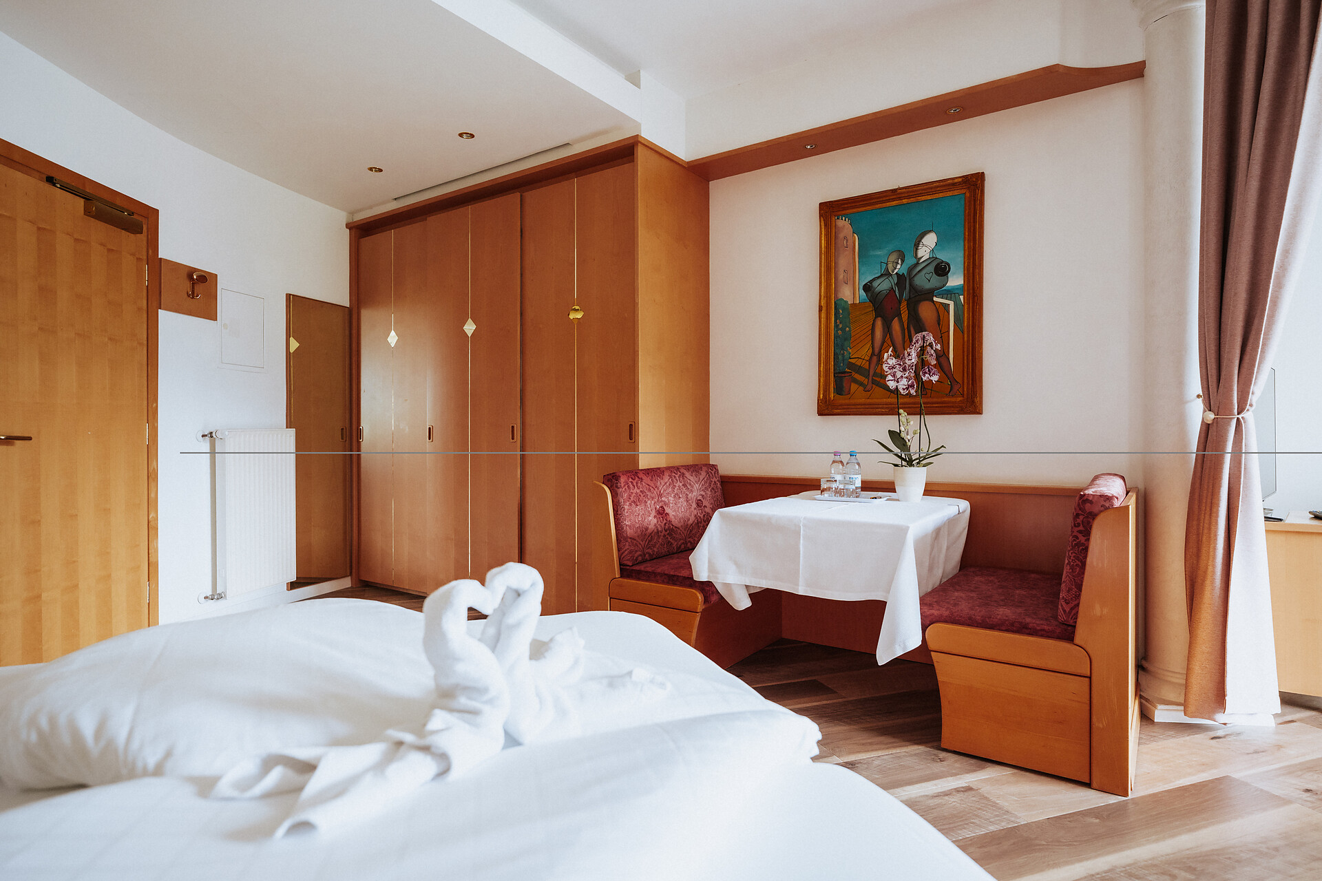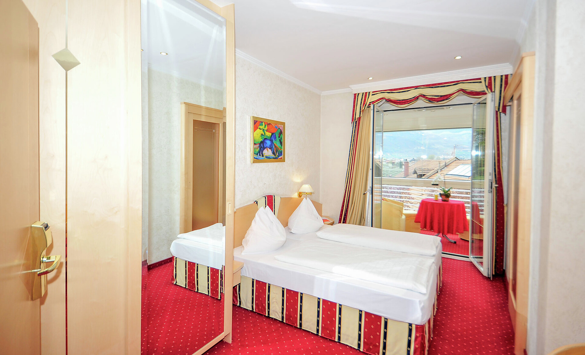 Wir bieten Ihnen vier verschiedene Zimmer Klassen. Standardzimmer mit und ohne Balkon, Superior Zimmer, die großen De-Luxe-Zimmer, bei uns finden Sie das passende Zimmer für Ihren Südtirol Urlaub.