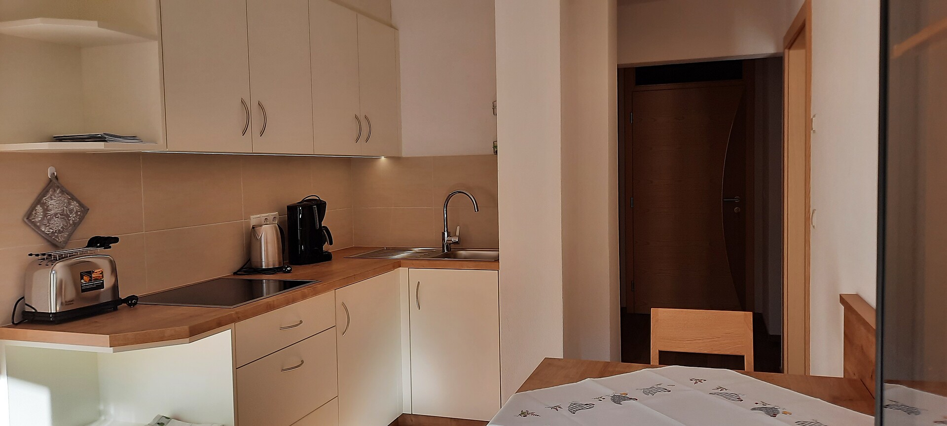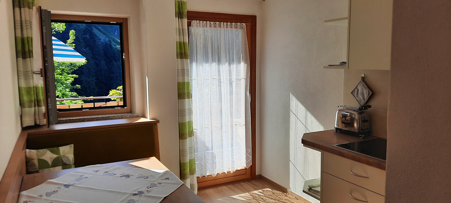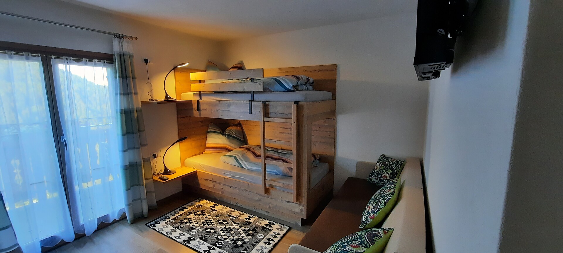 Doppelbett, Etagenbett, Bettsofa, Balkon, Barrierefrei, Separater Wohnraum, Bettwäsche vorhanden, Safe, Nichtraucher-Apartment, 2 oder mehr Schlafzimmer, Wohnküche, Kaffeemaschine, Minibar, Geschirrspülmaschine, Mikrowelle, Geschirrausstattung, Kochfeld, Wasserkocher, Dusche/Bad, Haarfön, Badetücher, TV, Satellit/Kabel, WLAN, Endreinigung inbegriffen, Saisonsmiete möglich, Haupthaus, Panoramablick, Südseite