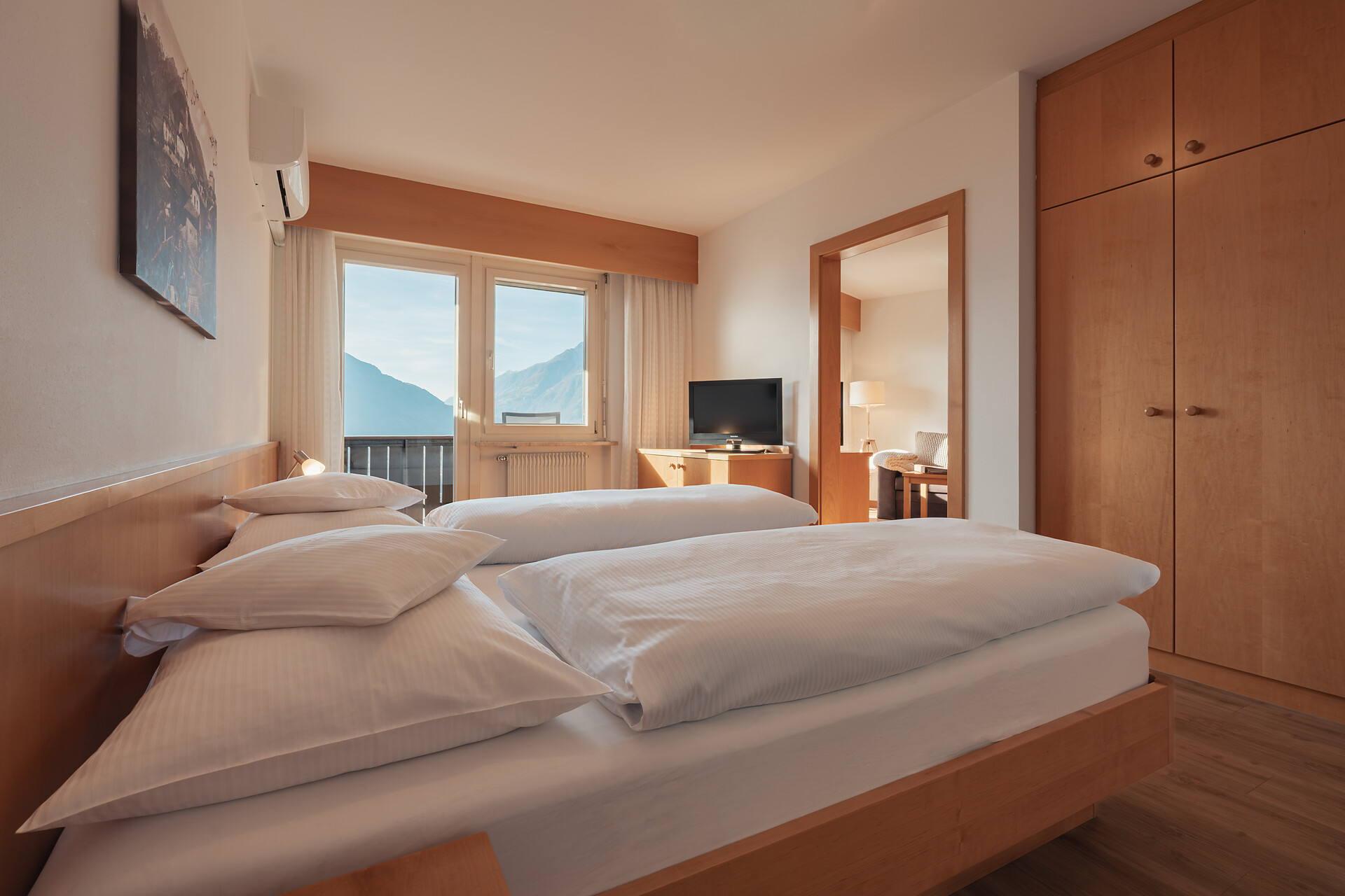 Doppelbett, Zustellbett, Doppelschlafcouch, Balkon, Klimaanlage, Bettwäsche vorhanden, Safe, Wohnküche, Kaffeemaschine, Geschirrspülmaschine, Elektroherd, Geschirrausstattung, Wasserkocher, Dusche/Bad, Separates WC, Haarfön, Badewanne, TV, Satellit/Kabel, WLAN, Reinigung auf Anfrage, Haupthaus, Panoramablick