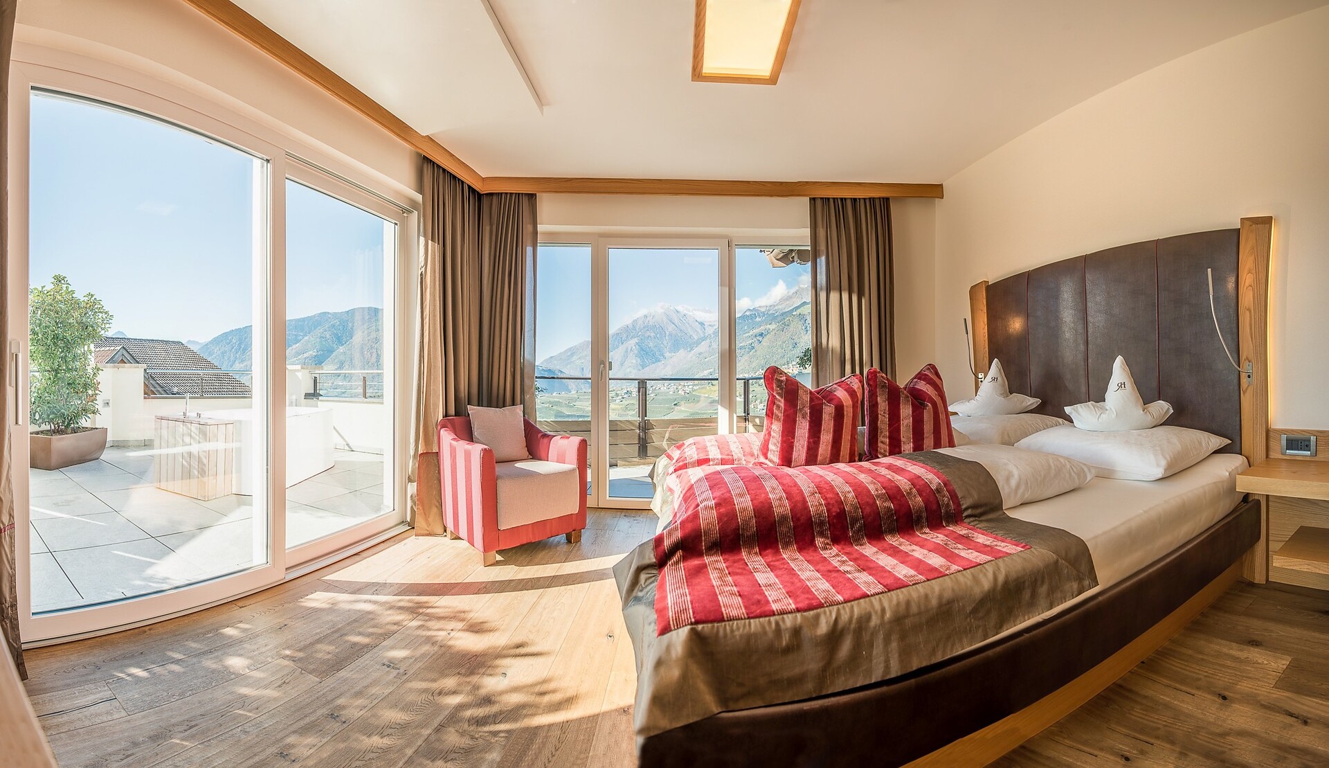 Fliehen Sie aus Ihrem Alltag direkt hinein in Ihre persönliche Auszeit im Resmairhof. Das einmalige Panoramahotel am Sonnenhügel von Schenna oberhalb von Meran überzeugt mit kulinarischen Highlights der Gourmetküche, einem breitgefächerten Wellnessangebot in unserer Oase der Ruhe, Zimmern und Suiten zum Wohlfühlen und der phänomenalen Aussicht über das Meraner Land. Die typischen Weinberge und Obstgärten gehen eine harmonische Symbiose mit den Südtiroler Berggiganten ein und schaffen ein Gefühl von Geborgenheit und Ankommen. Das spektakuläre Panorama ist Ihr treuer Begleiter im Resmairhof. Die liebevolle und herzliche Art von Familie Unterthurner ist das Herz dieses Hotels, das Ihren Urlaub in Schenna zum einmaligen Erlebnis macht. Die Gastgeberfamilie sorgt vom ersten Moment für Wohlbefinden und genussvolle Augenblicke.