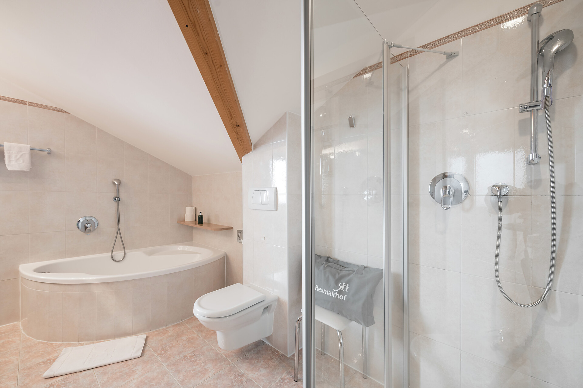 Das Hotel Resmairhof bietet 2 geräumige Zimmer für Gäste mit besonderen Bedürfnissen. Die Zimmer sind mit dem Fahrstuhl (140 x 110 cm) erreichbar und verfügen über ein gut ausgerüstetes Bad (es fehlen lediglich die Haltegriffe) und über eine für Rollstuhlfahrer geeignete Dusche sowie über eine Badewanne. Alle Dienstleistungen und Strukturen des Hotels sind gut zugänglich. Es steht ein bequemer Parkplatz zur Verfügung.