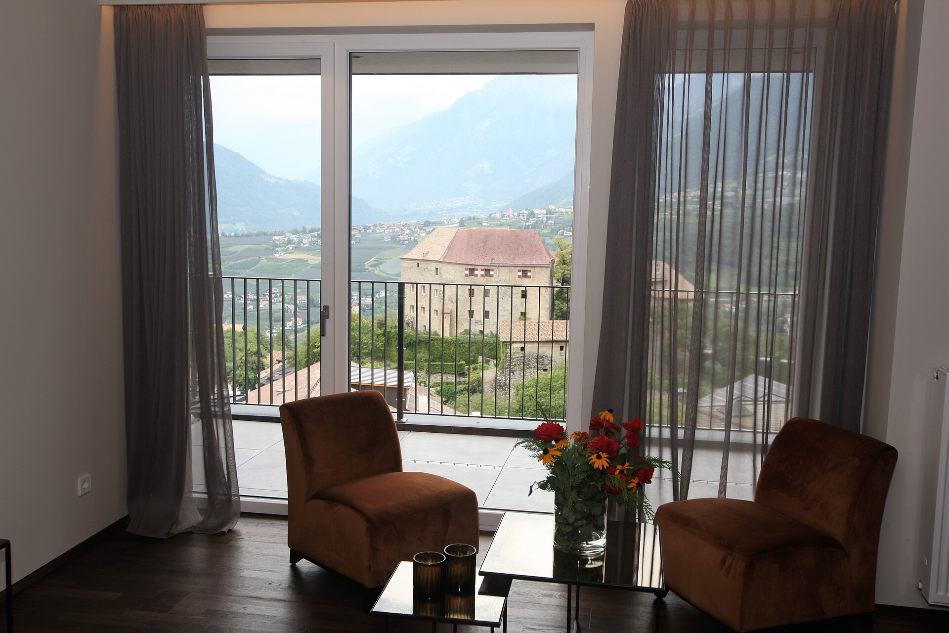 Blick: Schenna und Meranerland. Südwestbalkon.