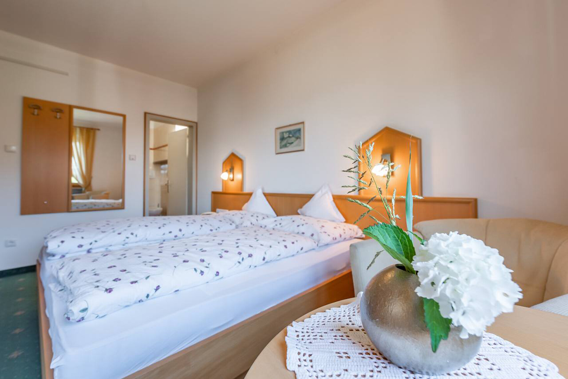 Doppelzimmer, Doppelbett, Zustellbett, Babybett, Balkon, Dusche / Bad, Haarfön, TV, Satellit/Kabel, Südseite