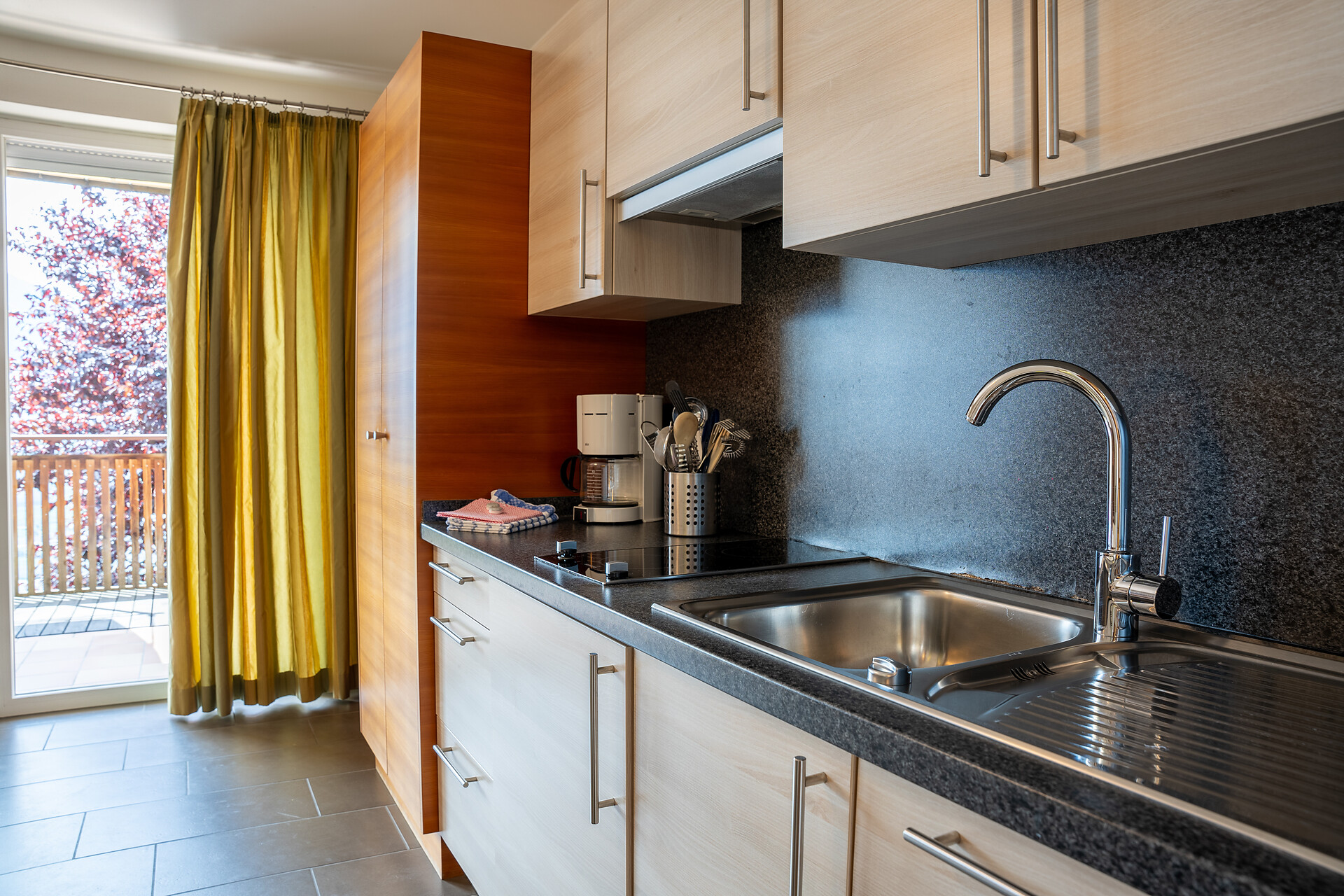 Doppelbett, Babybett, Bettsofa, Doppelschlafcouch, Terrasse, Garten, Barrierefrei, Separater Wohnraum, Bettwäsche vorhanden, Safe, Wohnküche, Kaffeemaschine, Elektroherd, Geschirrausstattung, Wasserkocher, Dusche/Bad, Haarfön, Bademantel, Badetücher, TV, Satellit/Kabel, WLAN, Reinigung auf Anfrage, Endreinigung inbegriffen, Mit Hotelservice, Haupthaus, Südseite