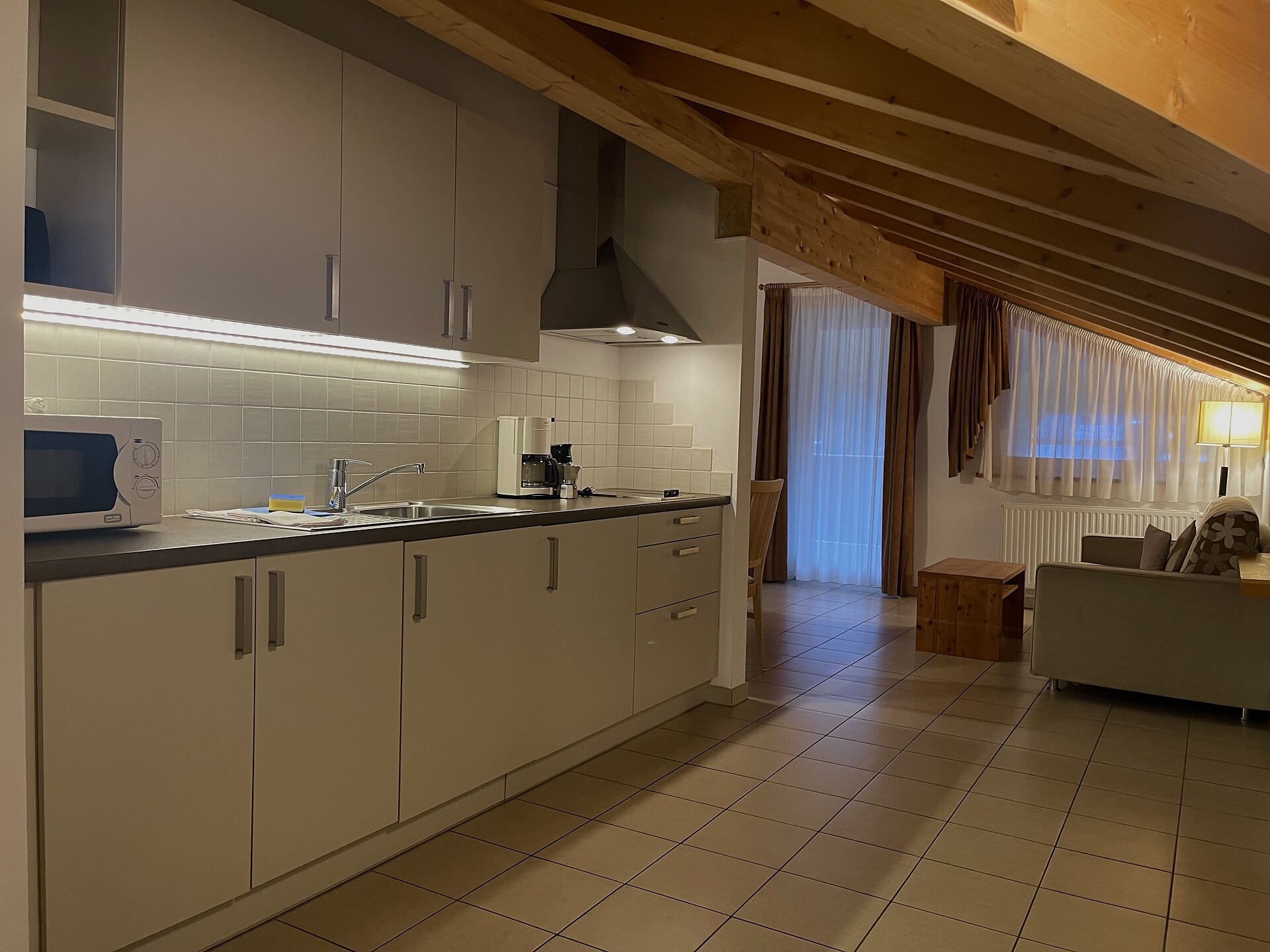 Doppelbett, Babybett, Bettsofa, Doppelschlafcouch, Balkon, Separater Wohnraum, Bettwäsche vorhanden, Safe, Wohnküche, Kaffeemaschine, Elektroherd, Mikrowelle, Geschirrausstattung, Dusche/Bad, Bidet, Haarfön, Bademantel, Badetücher, TV, Satellit/Kabel, WLAN, Internetanschluss, Reinigung auf Anfrage, Haupthaus, Panoramablick, Südseite