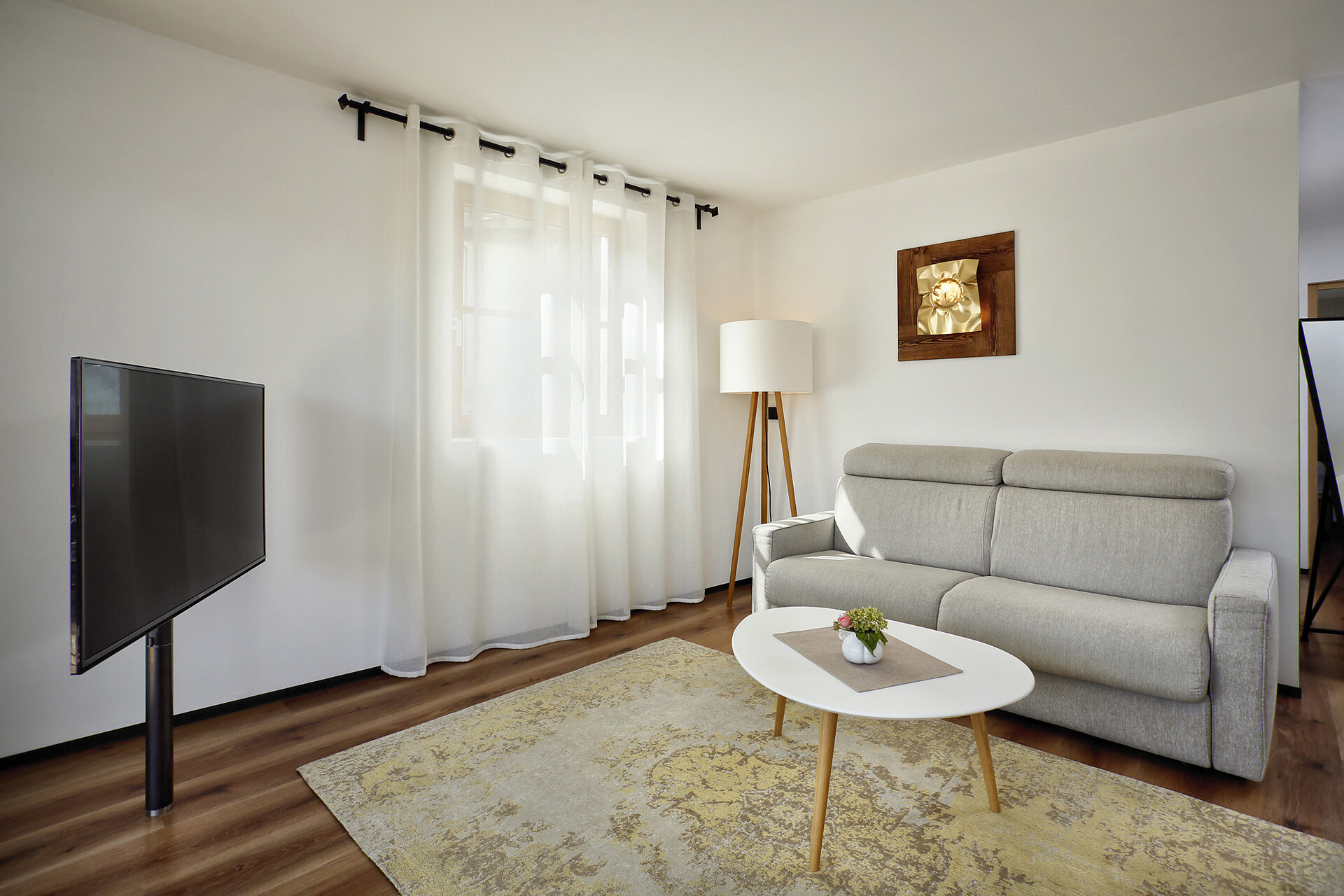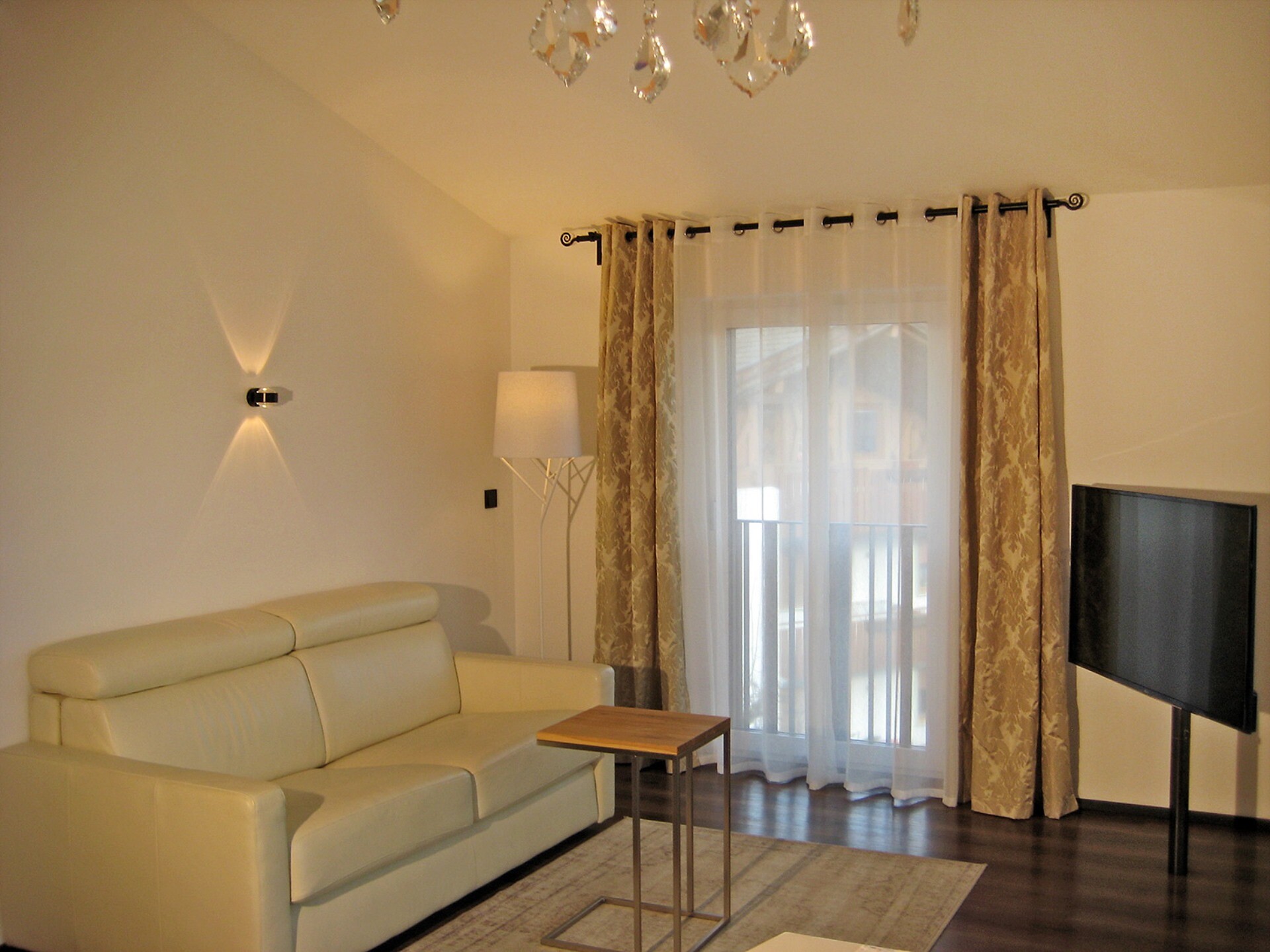 Doppelbett, Babybett, Doppelschlafcouch, Balkon, Separater Wohnraum, Bettwäsche vorhanden, Wohnküche, Kaffeemaschine, Elektroherd, Geschirrausstattung, Wasserkocher, Dusche/Bad, Haarfön, Badetücher, TV, Satellit/Kabel, WLAN, Endreinigung inbegriffen, Haupthaus, Panoramablick, Südseite