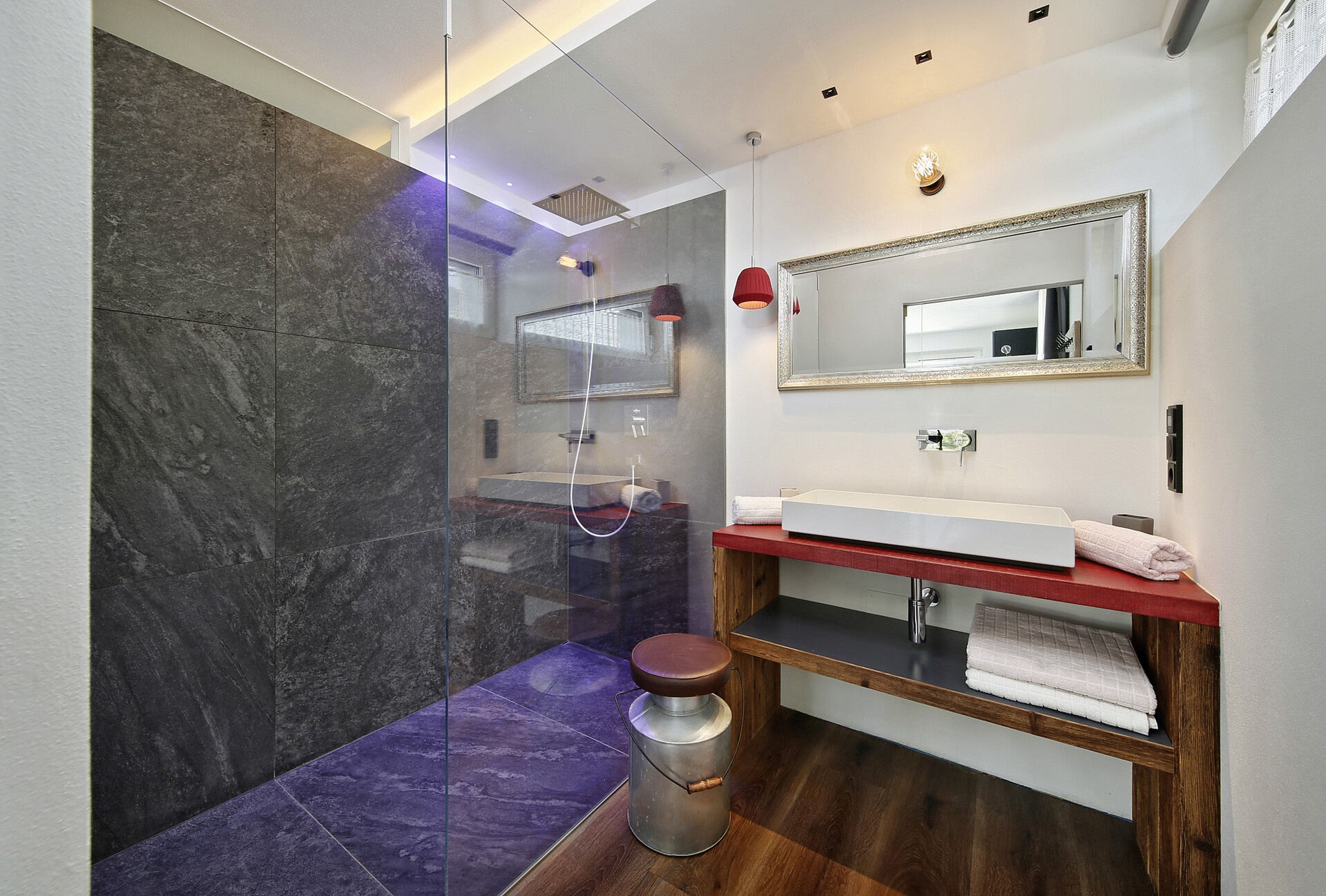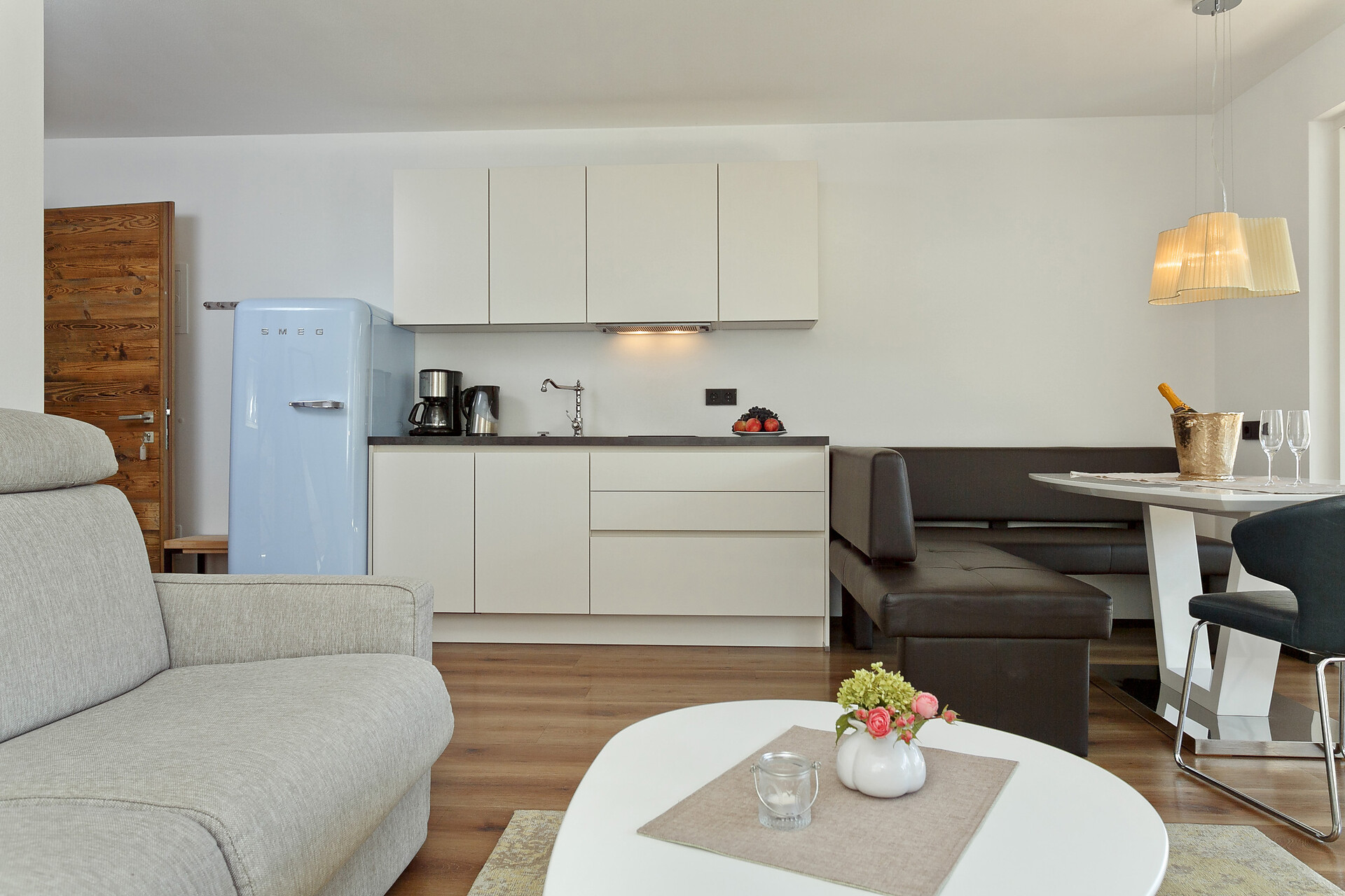 Die fünf Ferienwohnungen verfügen über eine exklusive Einrichtung, großzügige Bäder und nach Süden ausgerichtete Balkone und Terrassen. Der gepflegte Garten mit Liegestühlen und einer gemütlichen Sitzecke lädt zum Entspannen ein. Eine Grillmöglichkeit mit Sitzbänken und Tischen steht Ihnen in der Residence Kronstein ca. 50 m entfernt zur Verfügung.