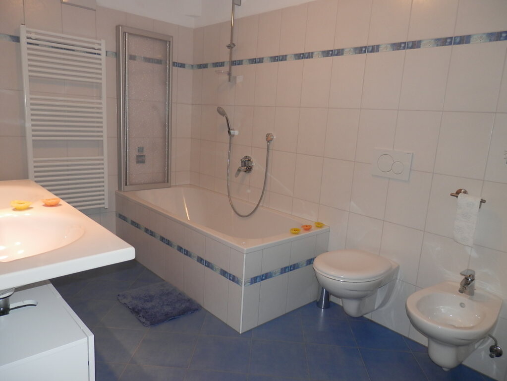 -Im Bad finden Sie eine Badewanne mit Duschmöglichkeit