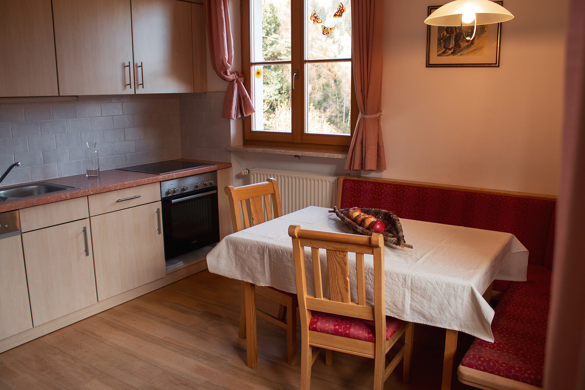 Die Wohnungen sind ausgestattet mit Heizung, vollausgestattete Küche mit Geschirrspüler, Backofen, Kühlschrank mit Gefrierfach, 4 Zonen Ceram- Kochfeld, Kaffeemaschine und Mikrowelle. Das Bad verfügt über Wanne und Dusche, sowie WC. Jede Wohnung bietet einen Balkon und Terrasse mit anschließender Liegewiese, sowie eine Garage. Die Wohnungen bieten Platz für 2-6 Personen.