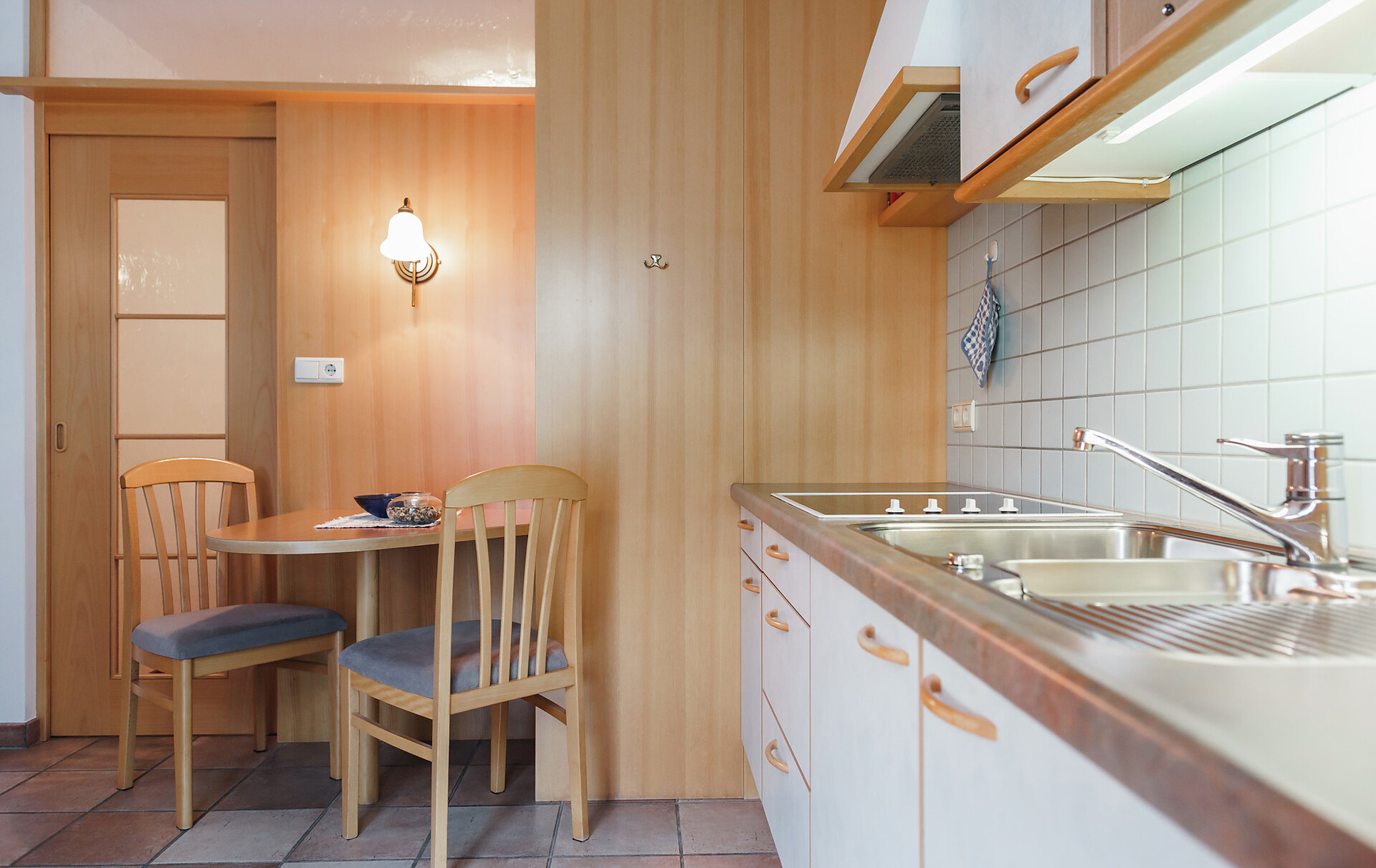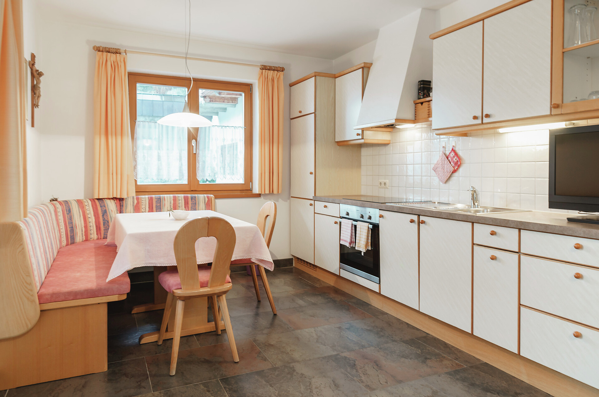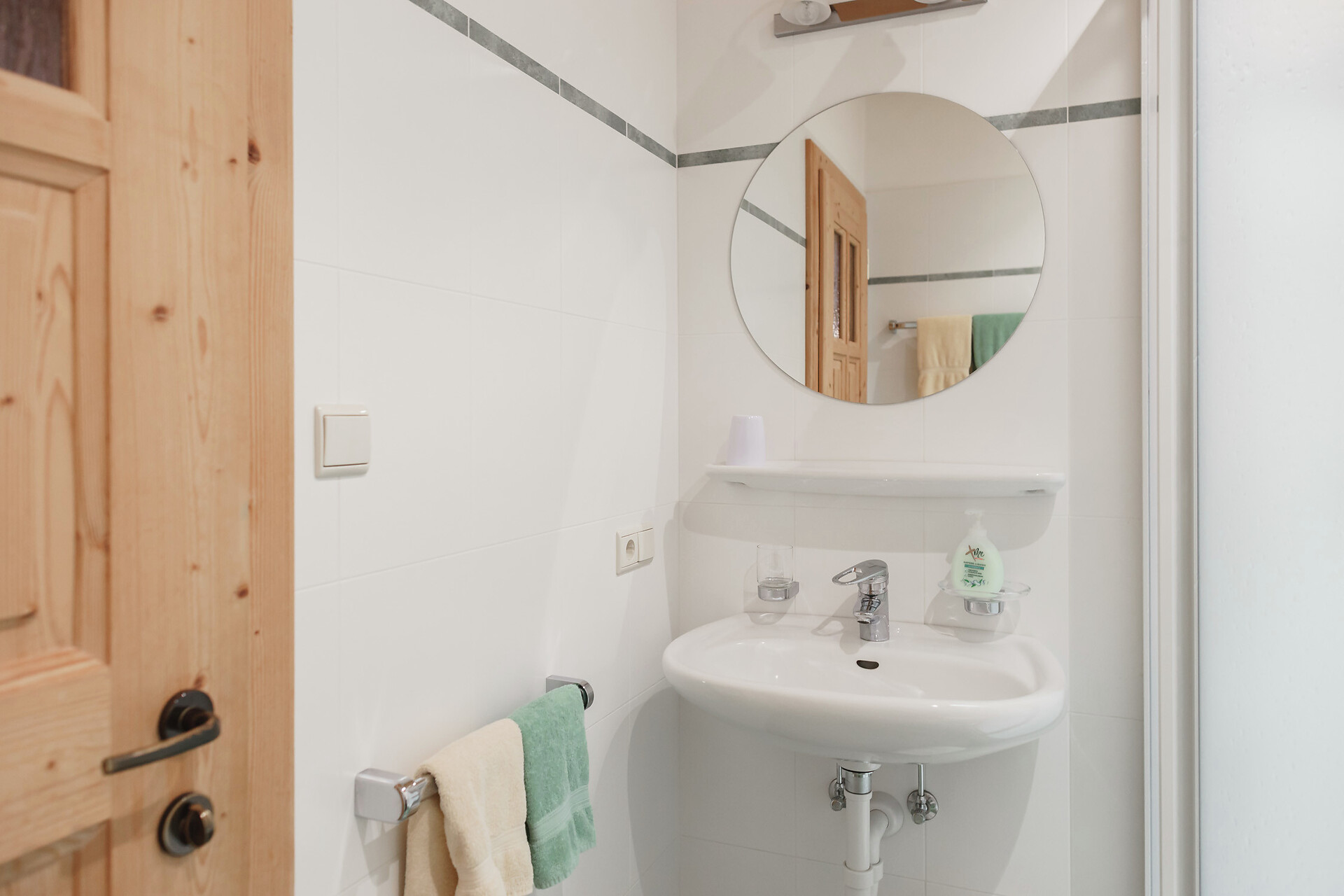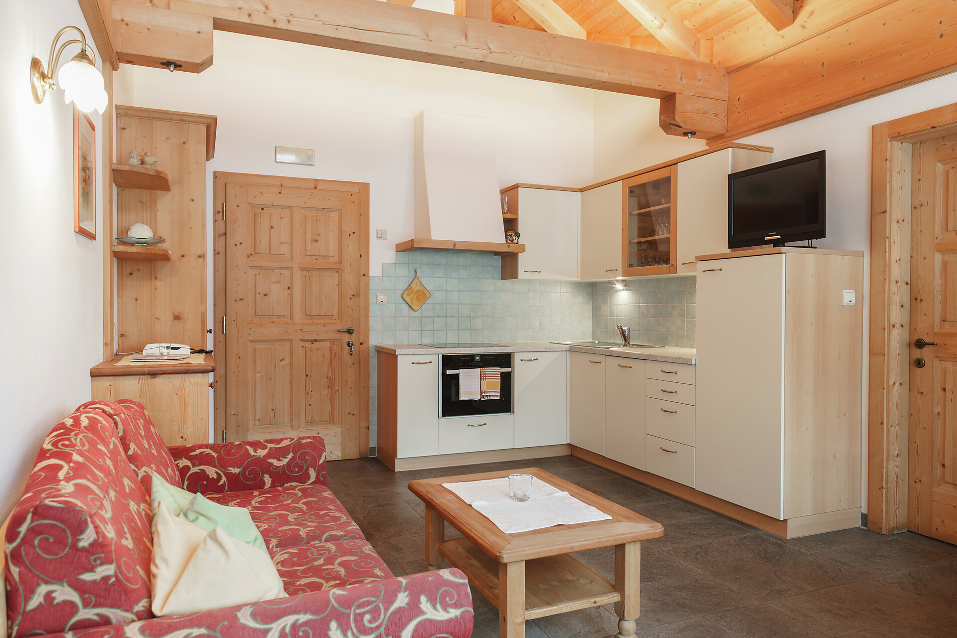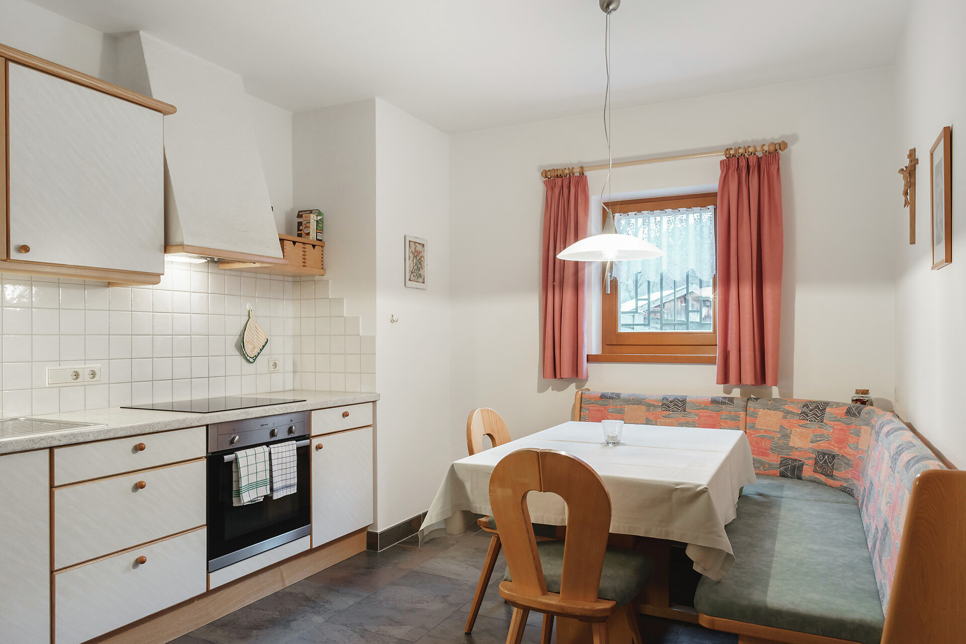 Zwei 55 bis 60 m² große, helle, nebeneinander liegende Dachgeschosswohnungen mit Giebel. Eine setzt sich aus zwei Doppelbettzimmern mit jeweils eigener Dusche – WC und einem geräumigen Wohnraum mit Südwestbalkon (Nachmittagssonne mit schönem Talblick) zusammen. Darin können 2 bis 6 Personen wohnen. Ideal für 2 Paare oder Familien.