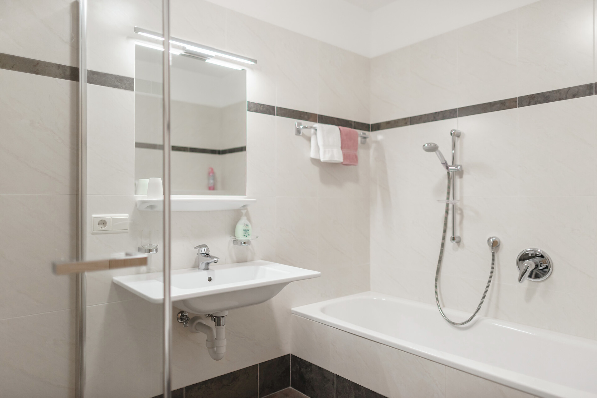 Die andere besteht aus einem Doppelbettzimmer, einem großen Wohnraum mit Doppelschlafcouch und zwei getrennten Duschen – WC, kleinem Abstellraum und großem sonnigen Südbalkon. Idealerweise vergeben wir die Wohnung an 2 bis 4 Personen. Geeignet für alle, welche sich einen großen und hellen Wohnraum wünschen.