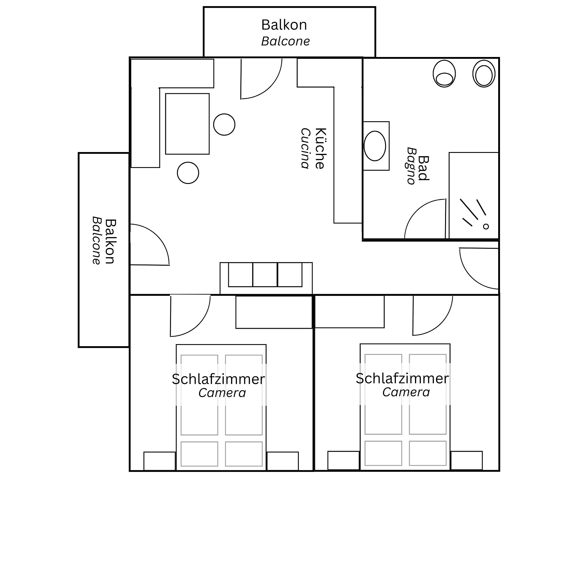 • 2 getrennte Schlafzimmer (ein Schlafzimmer ist mit einem Doppel- und einem Einzelbett ausgestattet und das andere Schlafzimmer ist mit einem Doppelbett ausgestattet)