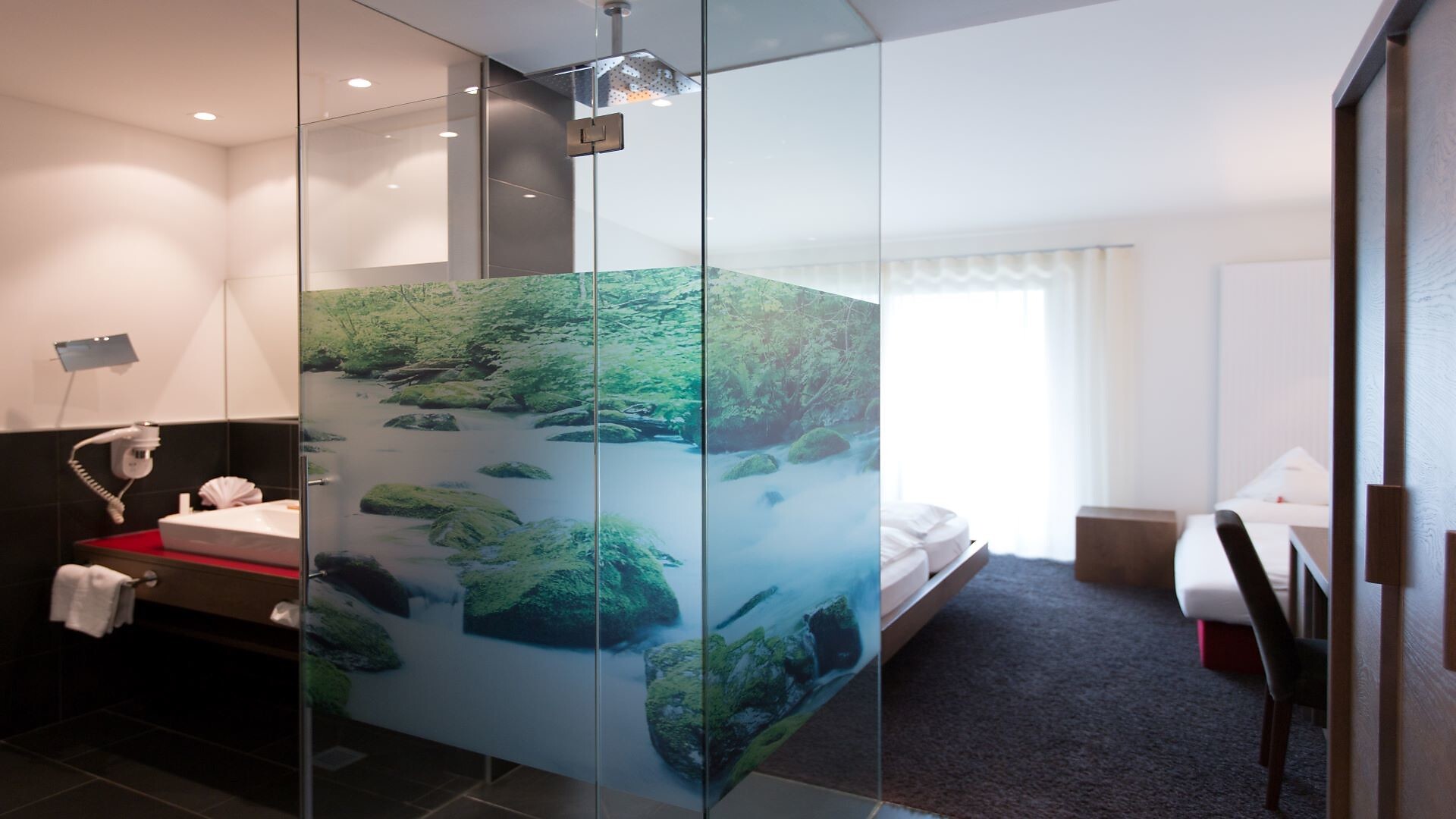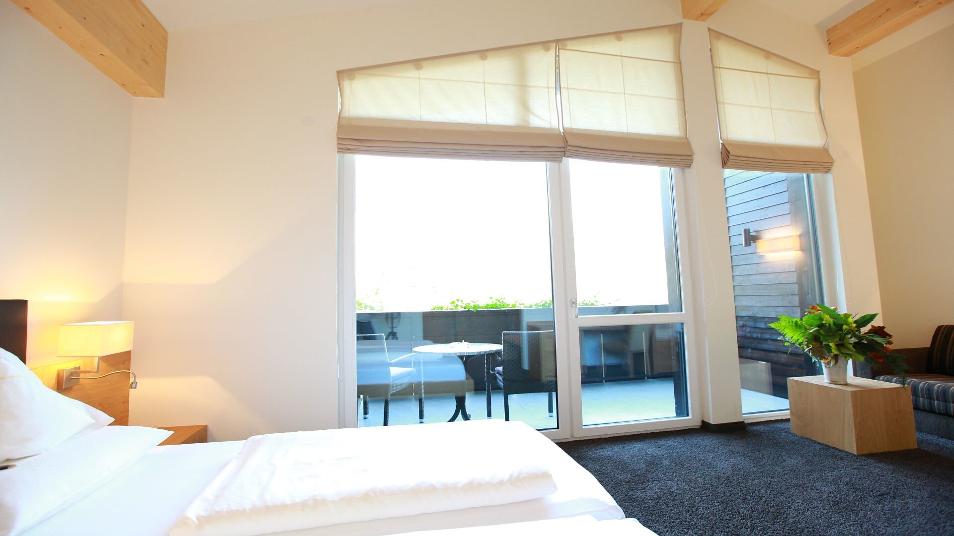 Suite, Doppelbett, Zustellbett, Babybett, Bettsofa, Balkon, Terrasse, Minibar, Safe, Dusche / Bad, Separates WC, Bidet, Haarfön, Bademantel, TV, Satellit/Kabel, WLAN, Internetanschluss, Haupthaus, Panoramablick, Südseite