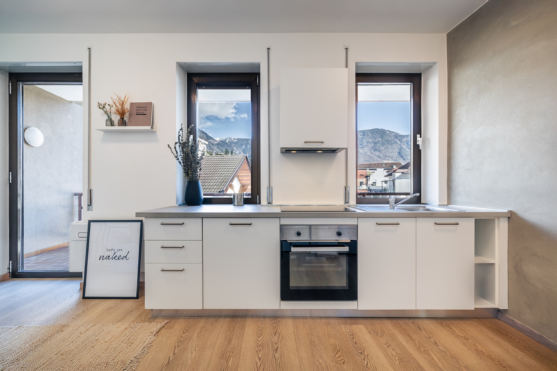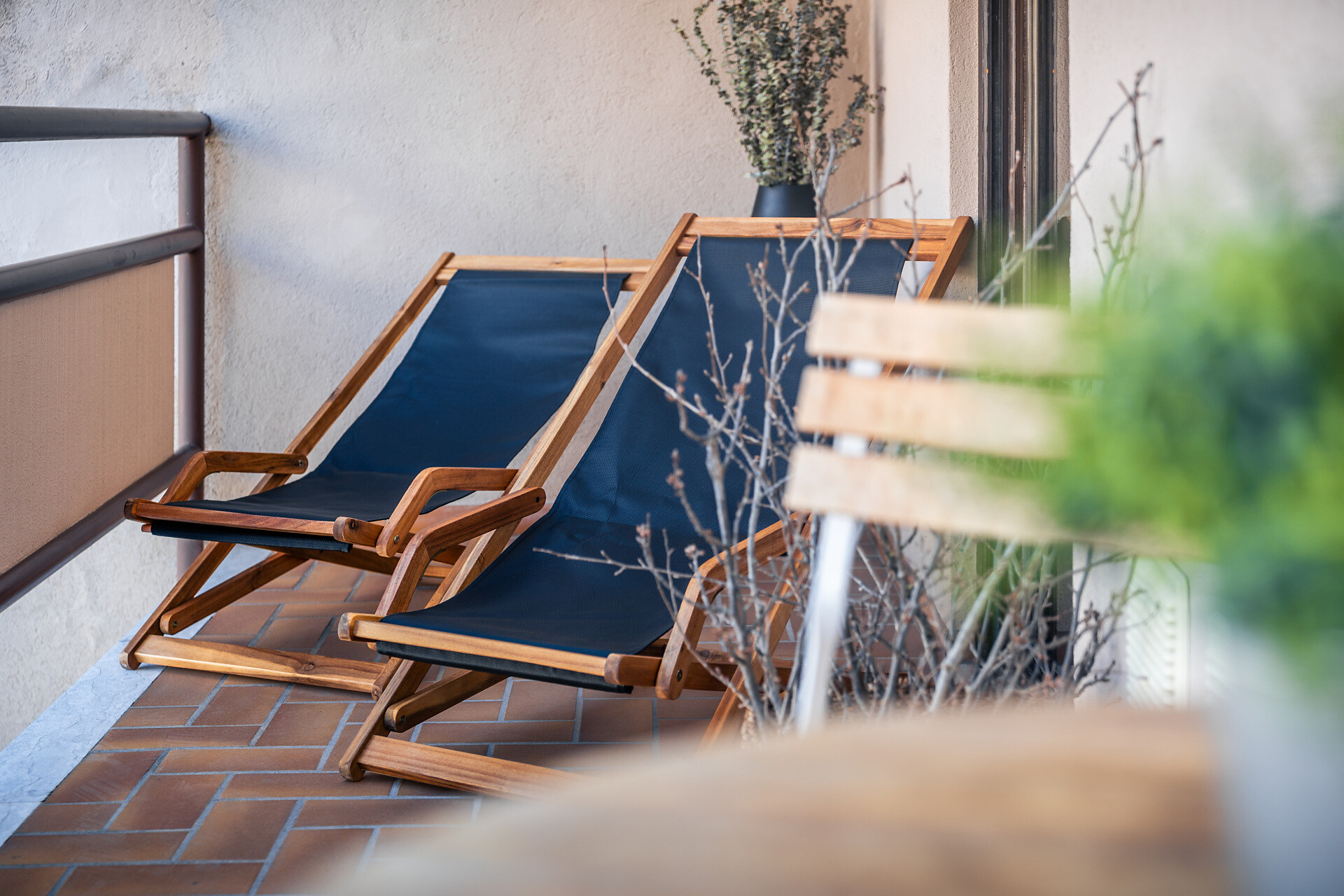 Der große Balkon bietet zwei Liegestühle zum Sonnenbaden und einen wunderschönen Blick auf den Tappeinerhügel.