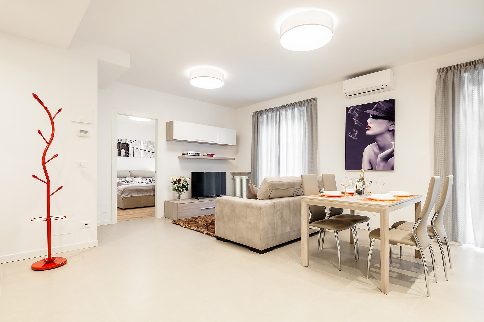 Ausstattung: Doppelbett, Doppelschlafcouch, Balkon, Klimaanlage, Separater Wohnraum, Bettwäsche vorhanden, Safe, Nichtraucher-Apartment, 2 oder mehr Schlafzimmer, Wohnküche, Kaffeemaschine, Elektroherd, Geschirrausstattung, Kochfeld, Wasserkocher, Backrohr, Dusche/Bad, Bidet, Haarfön, Badetücher, TV, WLAN, Endreinigung inbegriffen, Südseite