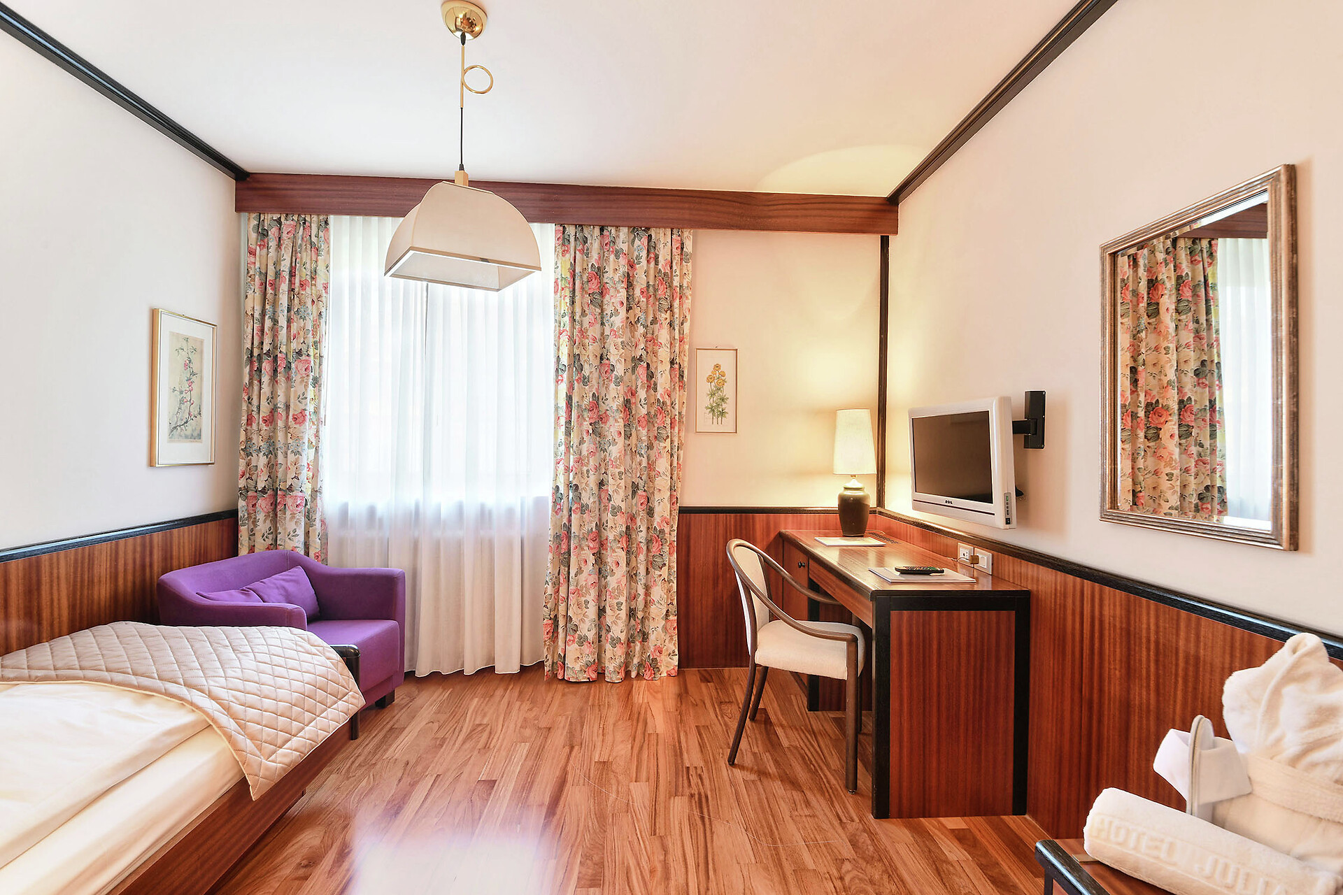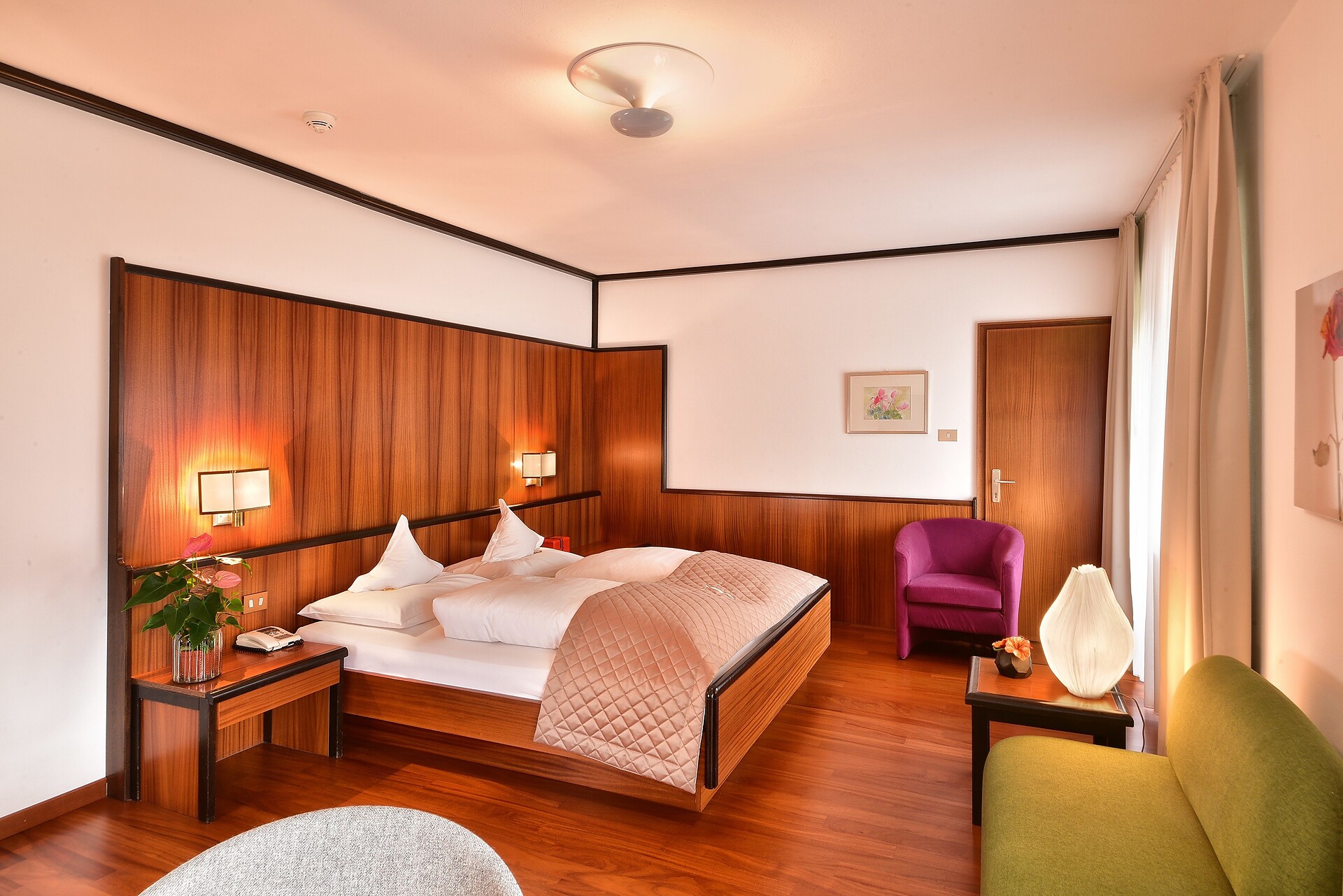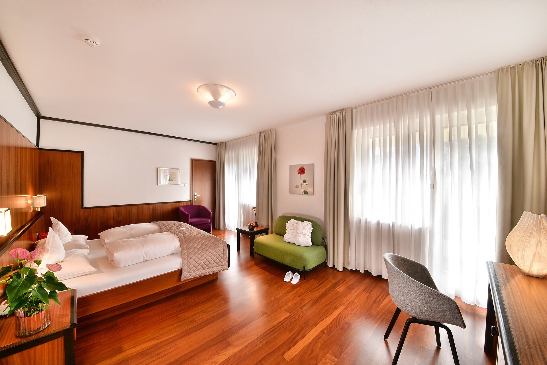 In den geräumigen Doppelzimmern des Hotel Juliane erwartet die Gäste exklusiver Stil, Eleganz und eine geschmackvolle Einrichtung. Die hellen und sonnendurchfluteten Doppelzimmer laden durch ihr ganz besonderes Wohlfühlambiente zum Verweilen und Entspannen ein. Größe ca. 26 m²