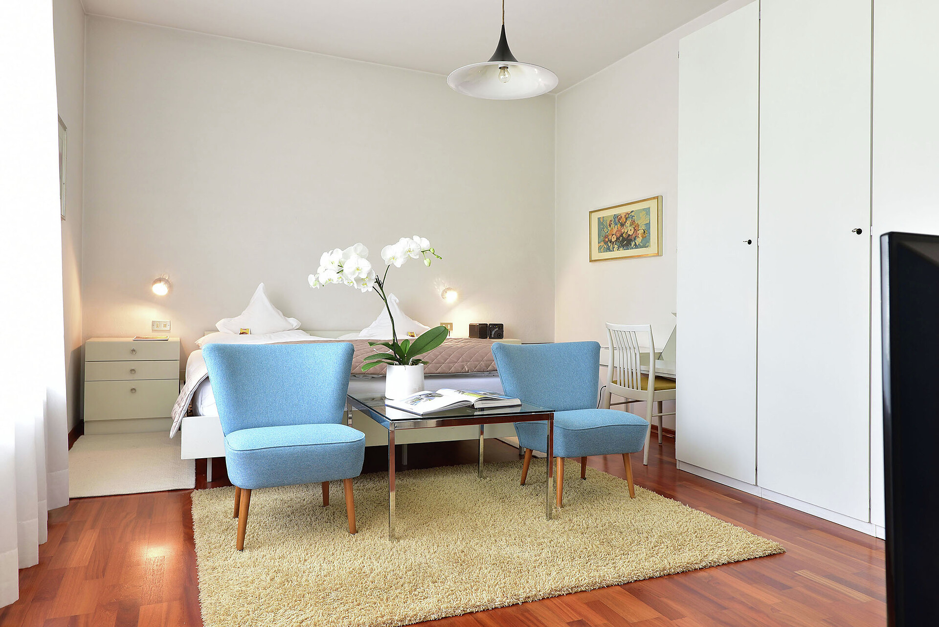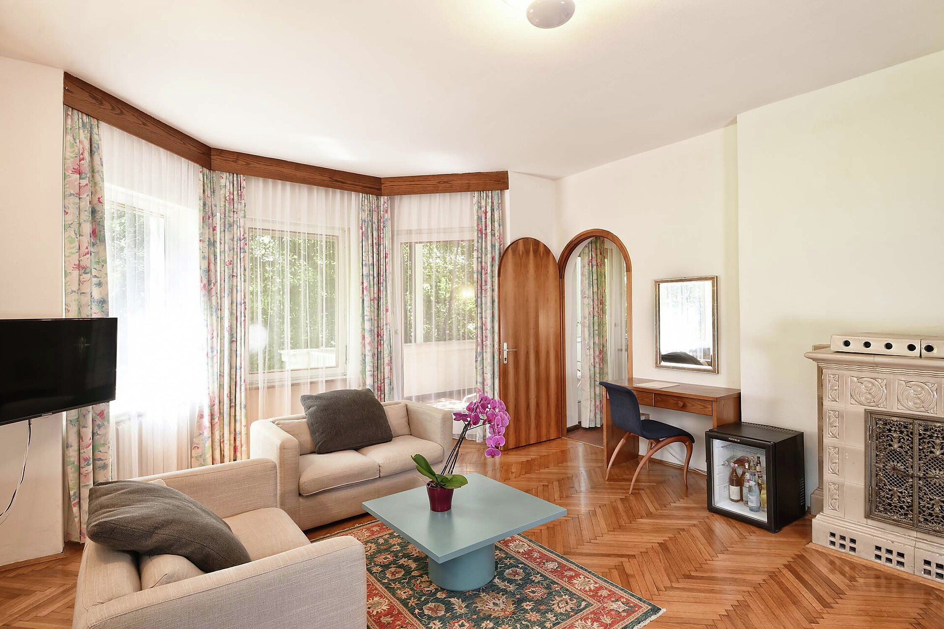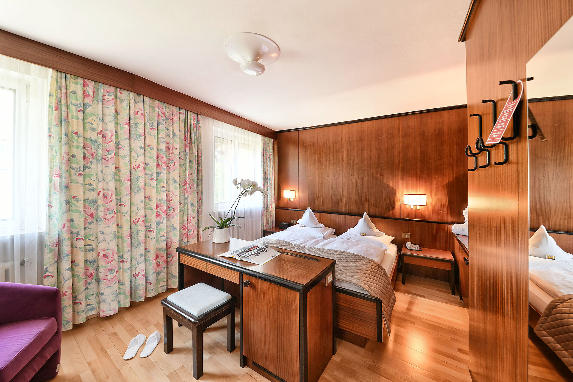 In den geräumigen Doppelzimmern des Hotel Juliane erwartet die Gäste exklusiver Stil, Eleganz und eine geschmackvolle Einrichtung. Die hellen und sonnendurchfluteten Doppelzimmer laden durch ihr ganz besonderes Wohlfühlambiente zum Verweilen und Entspannen ein. Größe ca. 26 m²