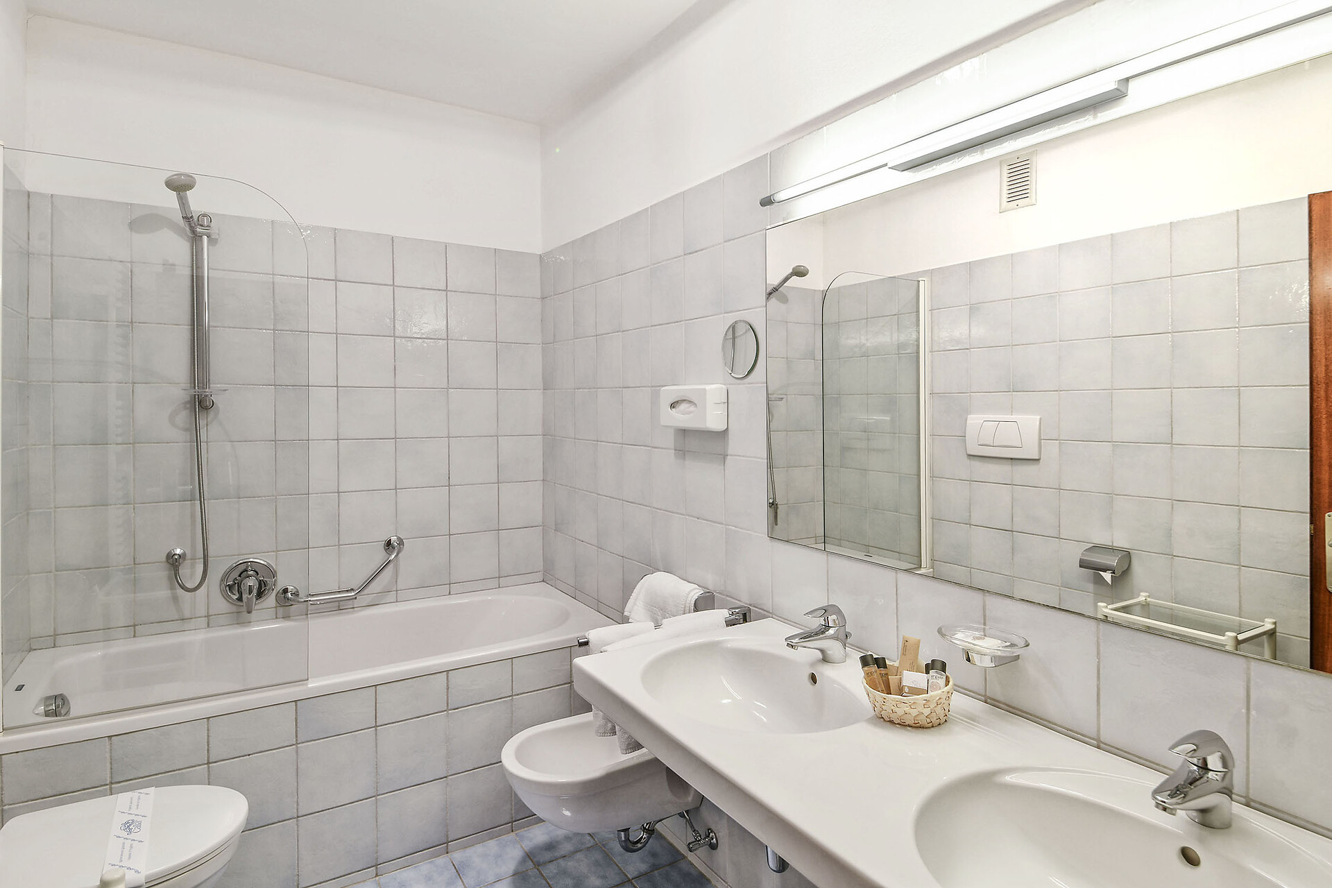 Doppelzimmer, Doppelbett, Zustellbett, Balkon, Klimaanlage, Zimmer mit Verbindungstür, Barrierefrei, Minibar, Safe, Dusche / Bad, Bidet, Haarfön, Bademantel, TV, WLAN, Haupthaus, Panoramablick, Südseite