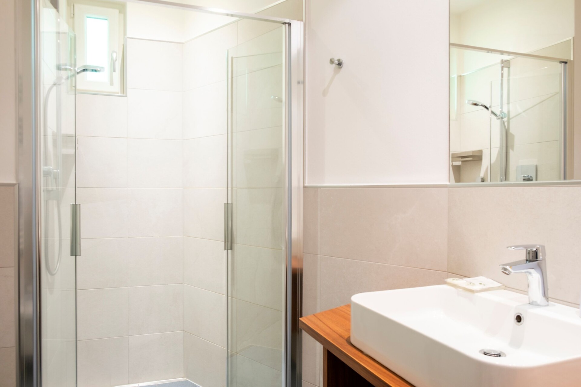 Die luxuriösen Badezimmern verfügen über extra große Duschen, Wc, Bidet und Haarfön und moderne Waschbecken mit viel Ablage. Die komplette Bettwasche Hand- und Badetücher sind inklusive.