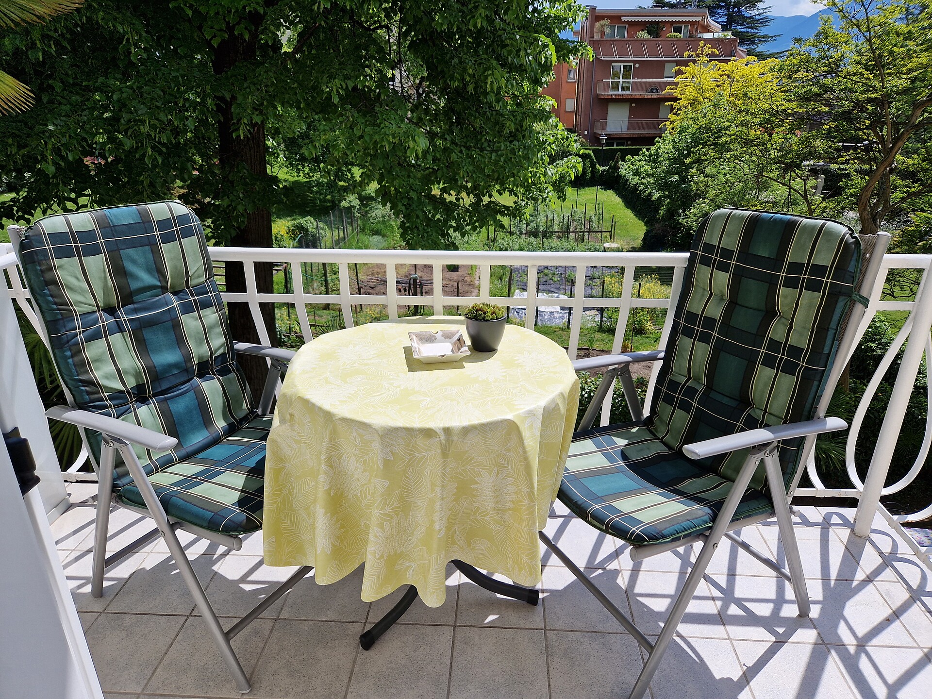 Alle Appartements haben einen sehr sonnigen Südbalkon mit Panoramablick in unserem mediterranen Garten, Parkanlagen und umliegende Berge.