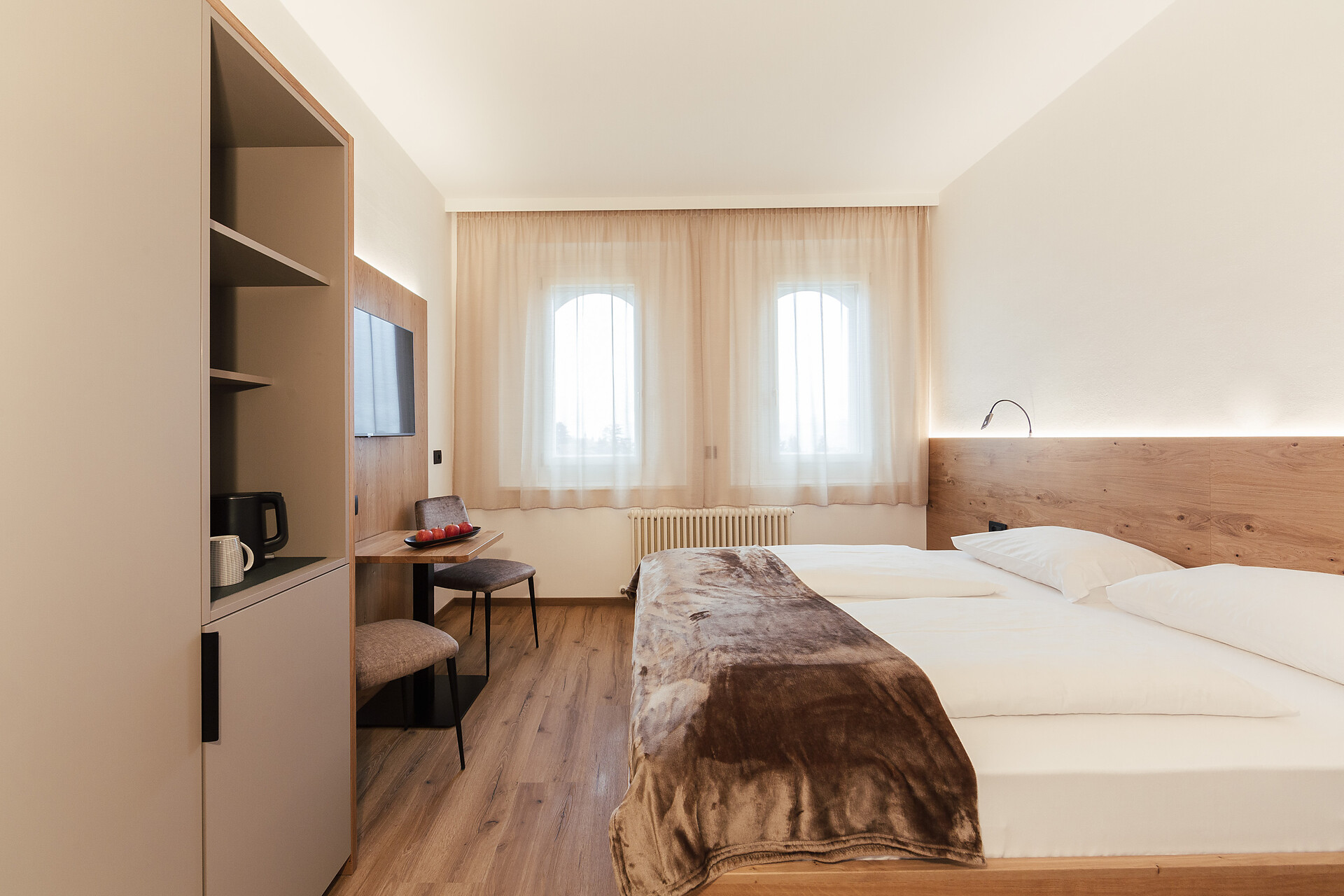 Ausstattung: Doppelzimmer, Doppelbett, Balkon, Allergikerzimmer, Safe, Nichtraucherzimmer, Dusche / Bad, Haarfön, TV, WLAN, Haupthaus, Panoramablick