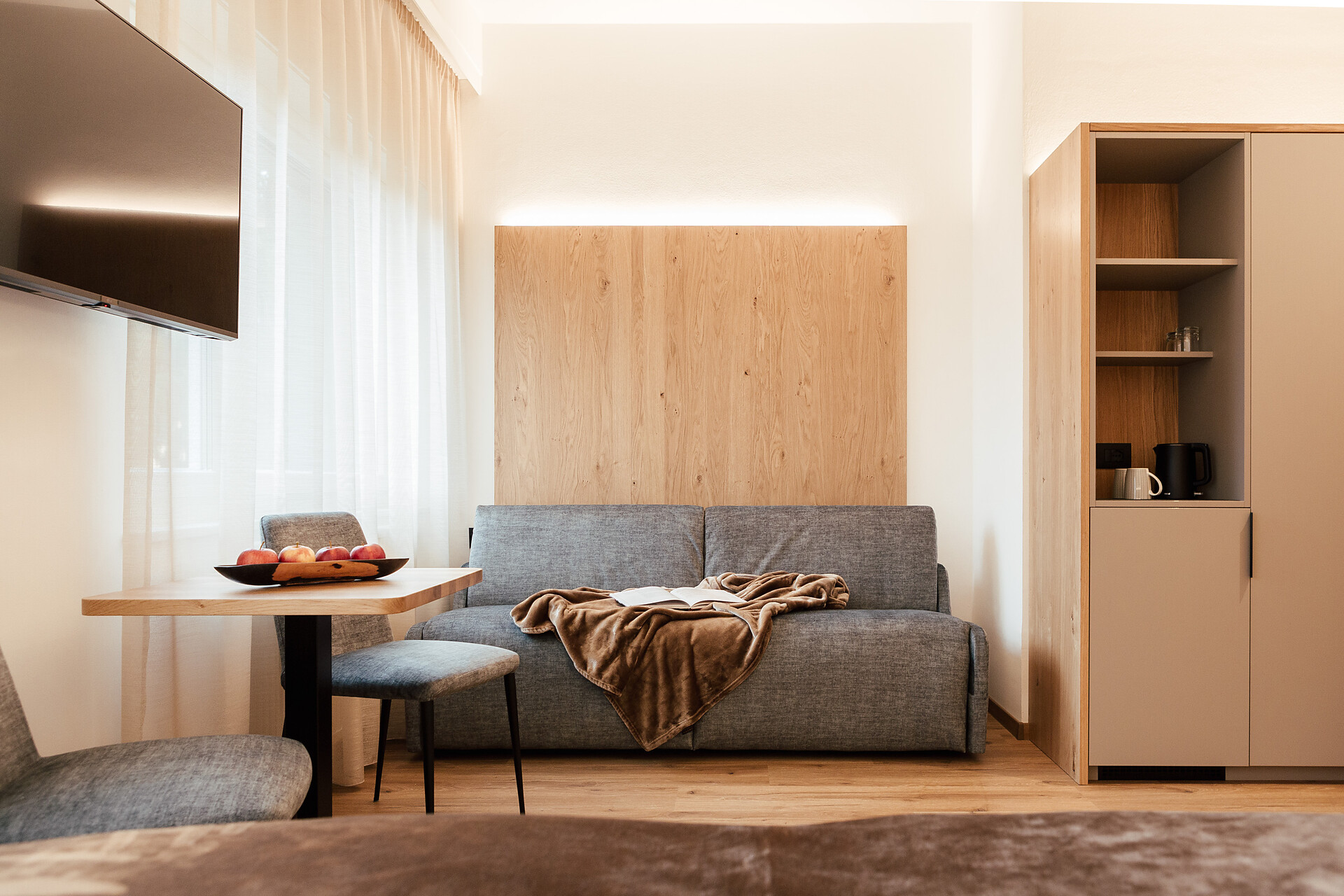 Ausstattung: Doppelzimmer, Doppelbett, Bettsofa, Allergikerzimmer, Minibar, Safe, Kaffee-/Tee-Maschine, Nichtraucherzimmer, Dusche / Bad, Haarfön, TV, WLAN, Haupthaus, Panoramablick
