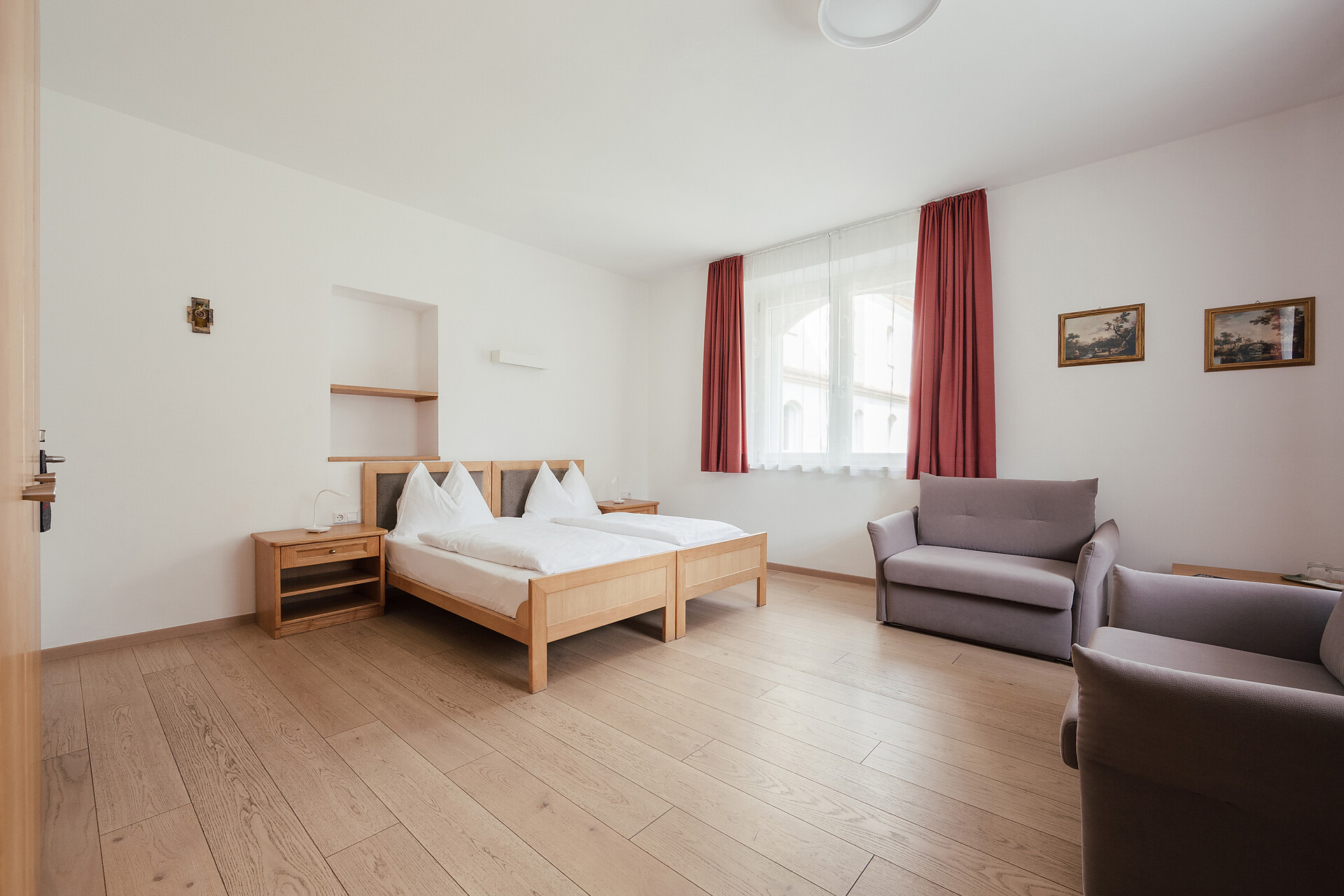 Ausstattung: Doppelzimmer, Doppelbett, Bettsofa, Allergikerzimmer, Barrierefrei, Safe, Nichtraucherzimmer, Dusche / Bad, Haarfön, TV, WLAN, Haupthaus, Panoramablick