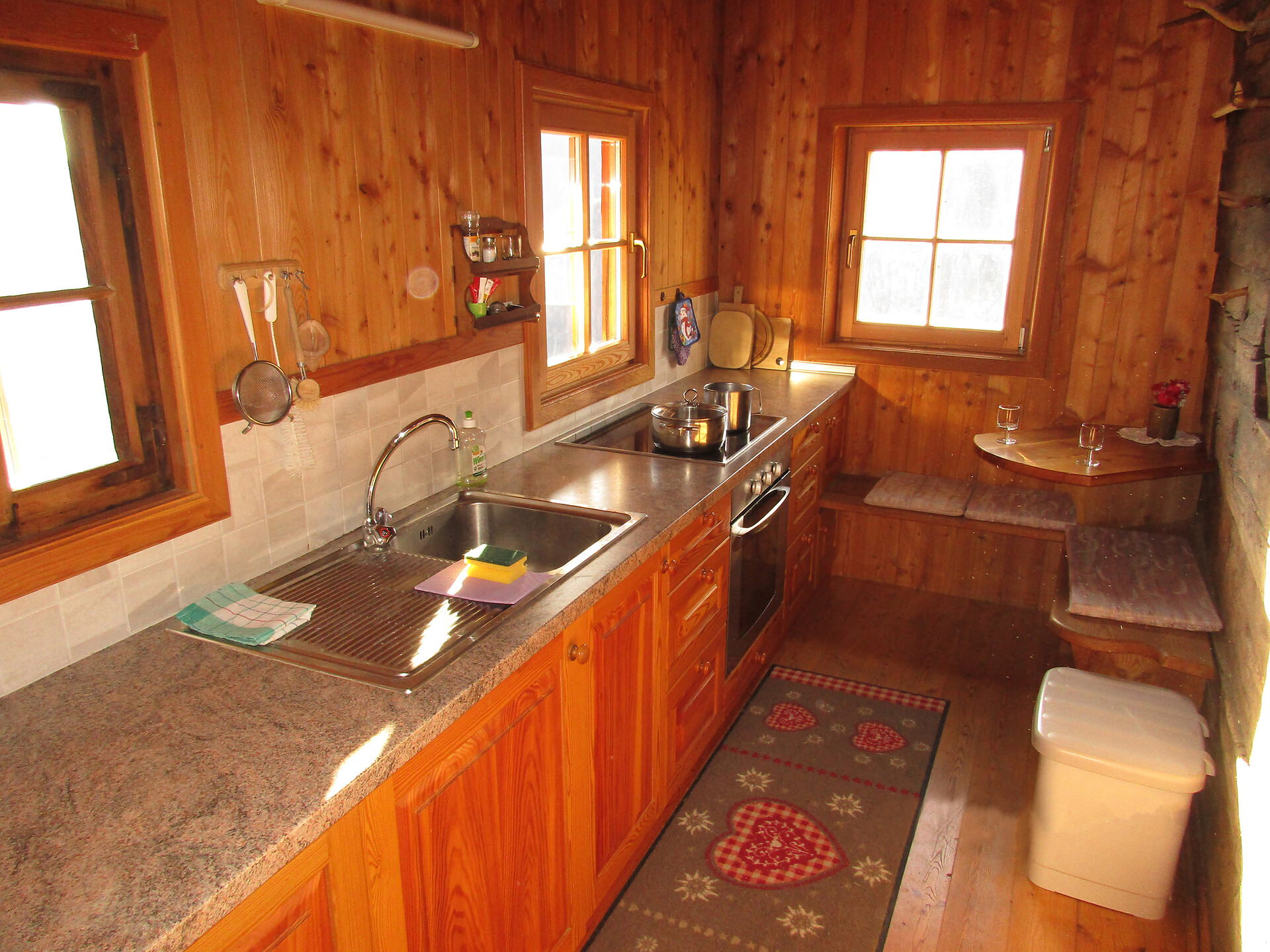Ausstattung: Einzelbett, Doppelbett, Babybett, Etagenbett, Terrasse, Kachelofen/Offener Kamin, Bettwäsche vorhanden, Safe, Separate Küche, Kaffeemaschine, Minibar, Elektroherd, Geschirrausstattung, Backrohr, Dusche/Bad, Haarfön, Badetücher, Waschmaschine im Apartment, WLAN, Endreinigung inbegriffen, Haupthaus, Panoramablick