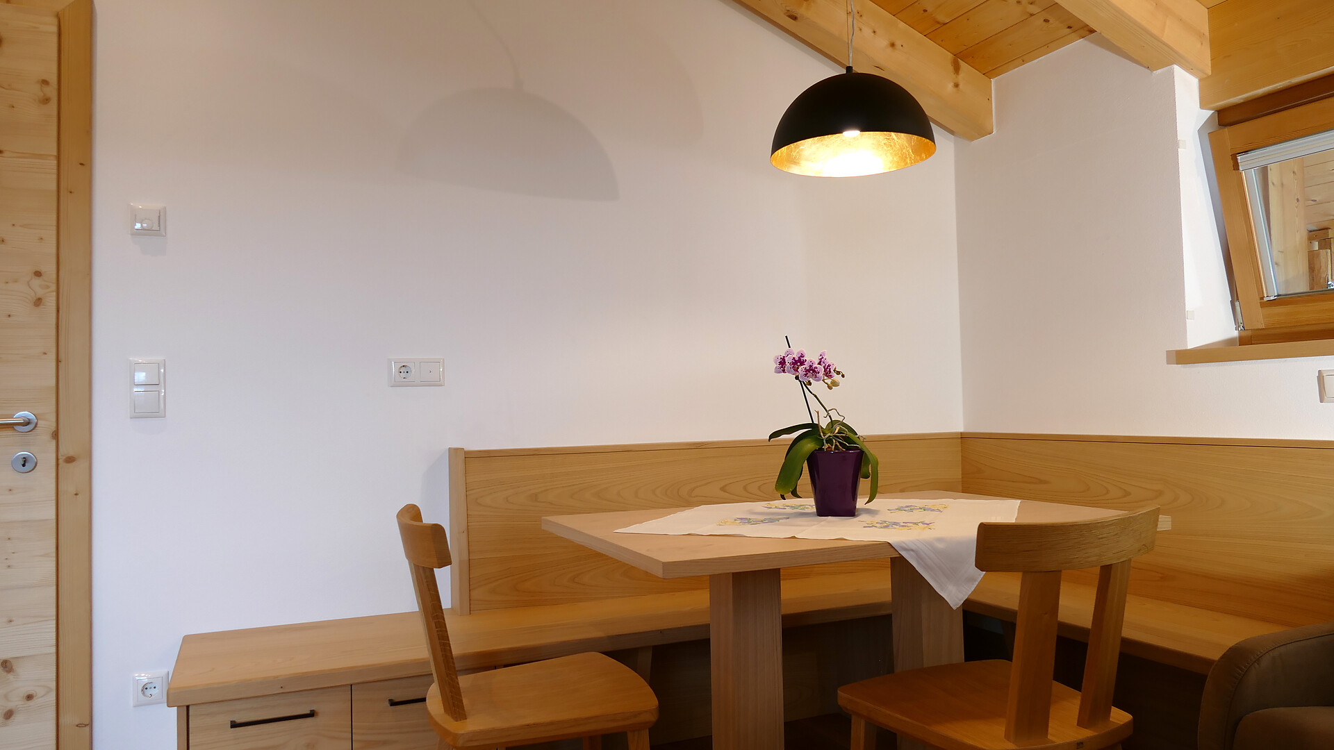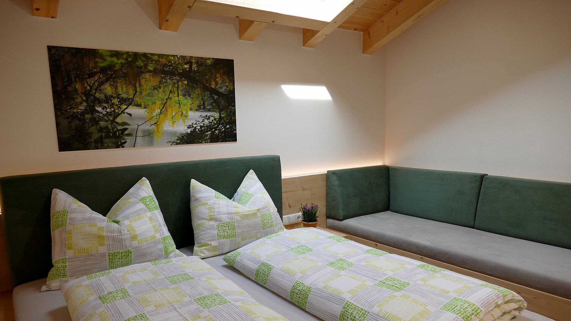 Ihr Feriendomizil befindet sich inmitten der Natur, ist umgeben von Apfelwiesen und Mischwald. Die im Jahr 2022 fertiggestellten Ferienwohnungen wurden im neu gebauten Nebenhaus des traditionellen Bauernhauses eingerichtet und sind mit einer Größe von gut 45 m² für jeweils zwei bis drei Personen konzipiert. Gegebenenfalls finden auch bis zu fünf Personen Platz.