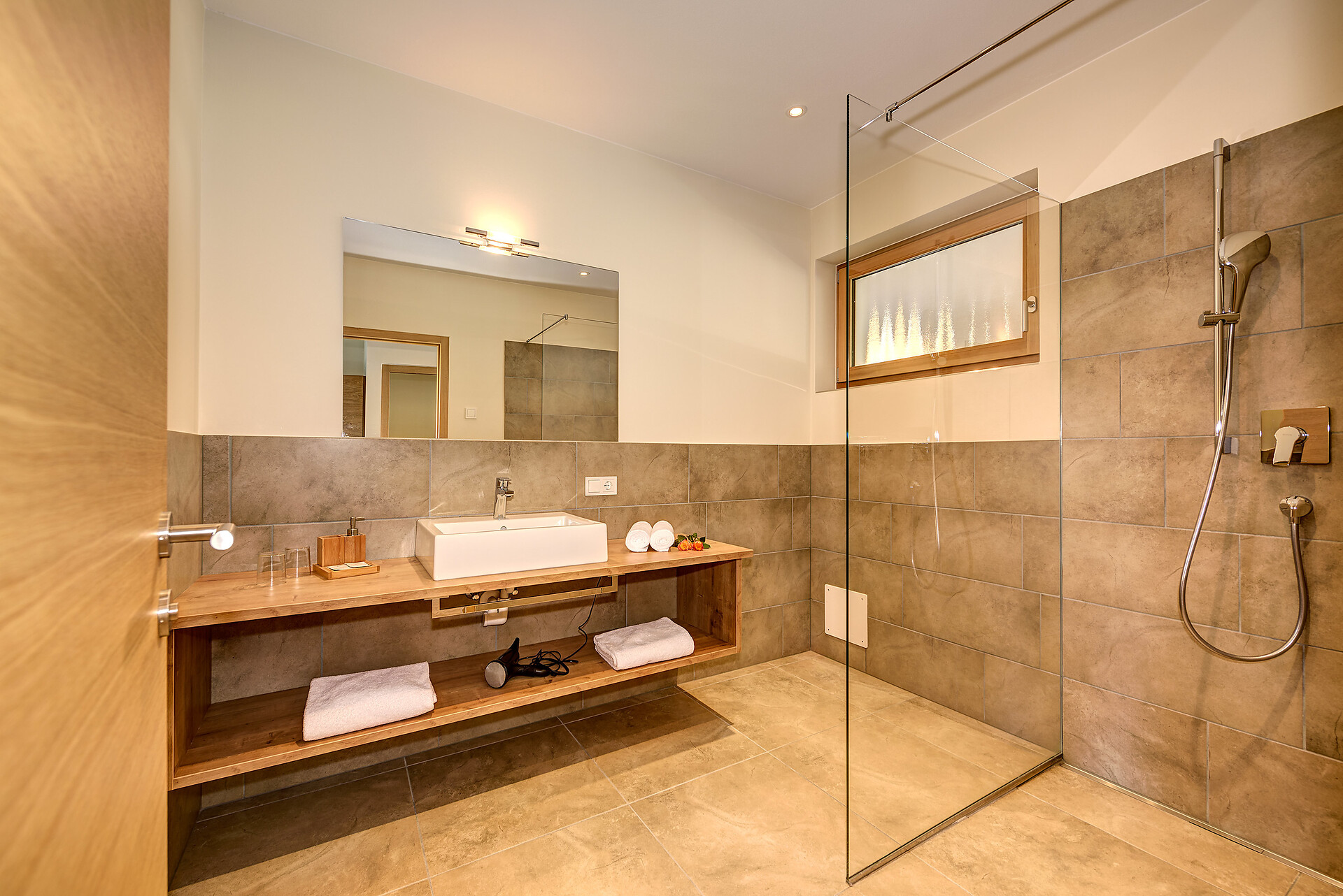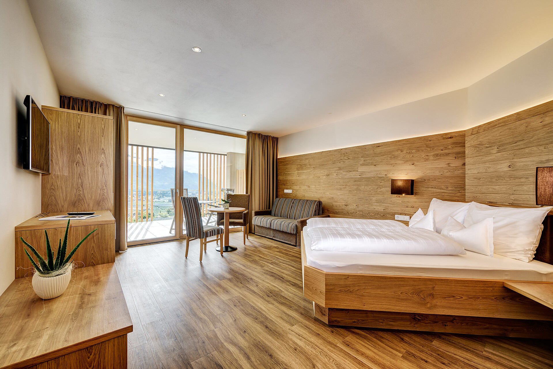 Die edle Ausstattung in warmen Naturtönen bietet ein angenehmes Ambiente, das zum Entspannen und Abschalten einlädt.