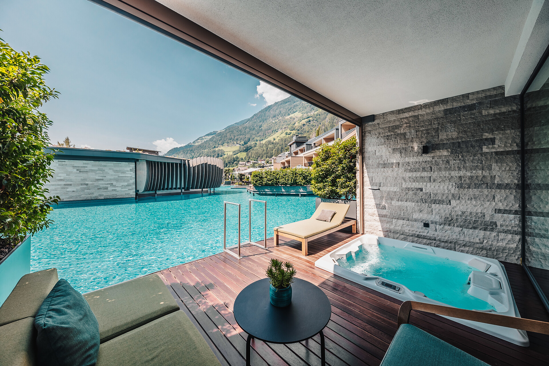 Mit nur 26 Wohneinheiten ist die See Lodge eines der kleinsten 5-Sterne Luxushotels in Südtirol. Das Repertoire geht von chicen Suiten bis hin zu noblen See-Suiten mit direktem Einstieg in den Badesee und vier extra-luxuriösen See-Villen (eine davon zweistöckig), umgeben vom tiefblauen Wasser des Sees. Das absolute Highlight der See-Villen ist die großzügige Wohlfühl-Terrasse mit Privatpool mit integrierter Whirlpoolfunktion, finnischer Sauna, Relaxliegen und privater Hängematte über dem Wasser. Privacy pur genießt man durch den weitläufigen Sichtschutz. Hier schwelgt man in Luxusurlaub der Extraklasse.