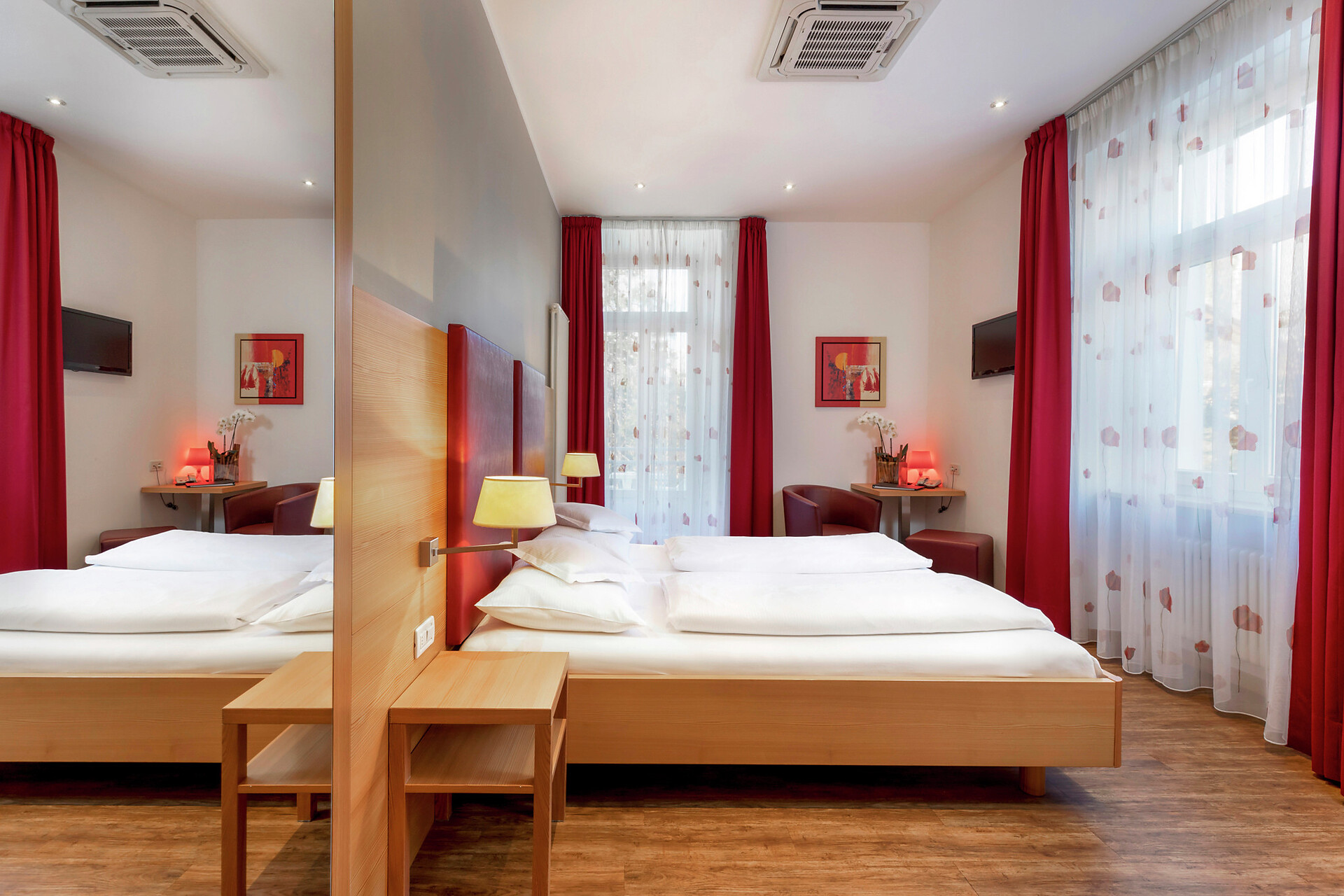 Für Gäste steht die Tiefgarage, Parkplätze im Freien und ein Busparkplatz zur Verfügung.