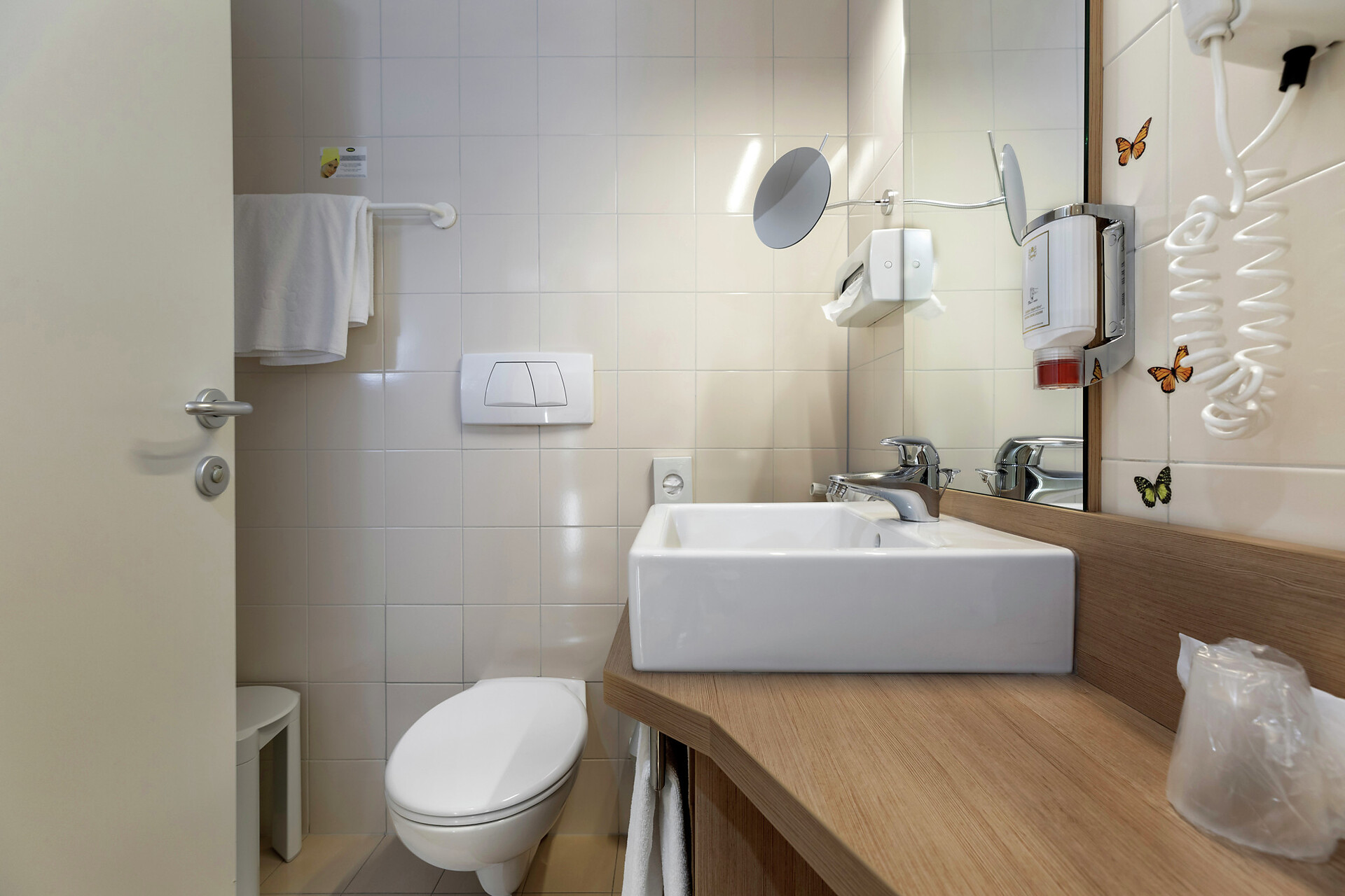 Das Hotel Kolping Meran verfügt über geräumige, behindertengerechte Doppelzimmer, die mit dem Aufzug (128 x 80 cm oder 140 x 120 cm) erreichbar sind. Die Hoteleinrichtungen, einschließlich des Wellnessbereichs, sind barrierefrei zugänglich. Parkmöglichkeiten gibt es auf dem Parkplatz vor dem Eingang (Zugangsrampe) und in der Tiefgarage (Aufzug).