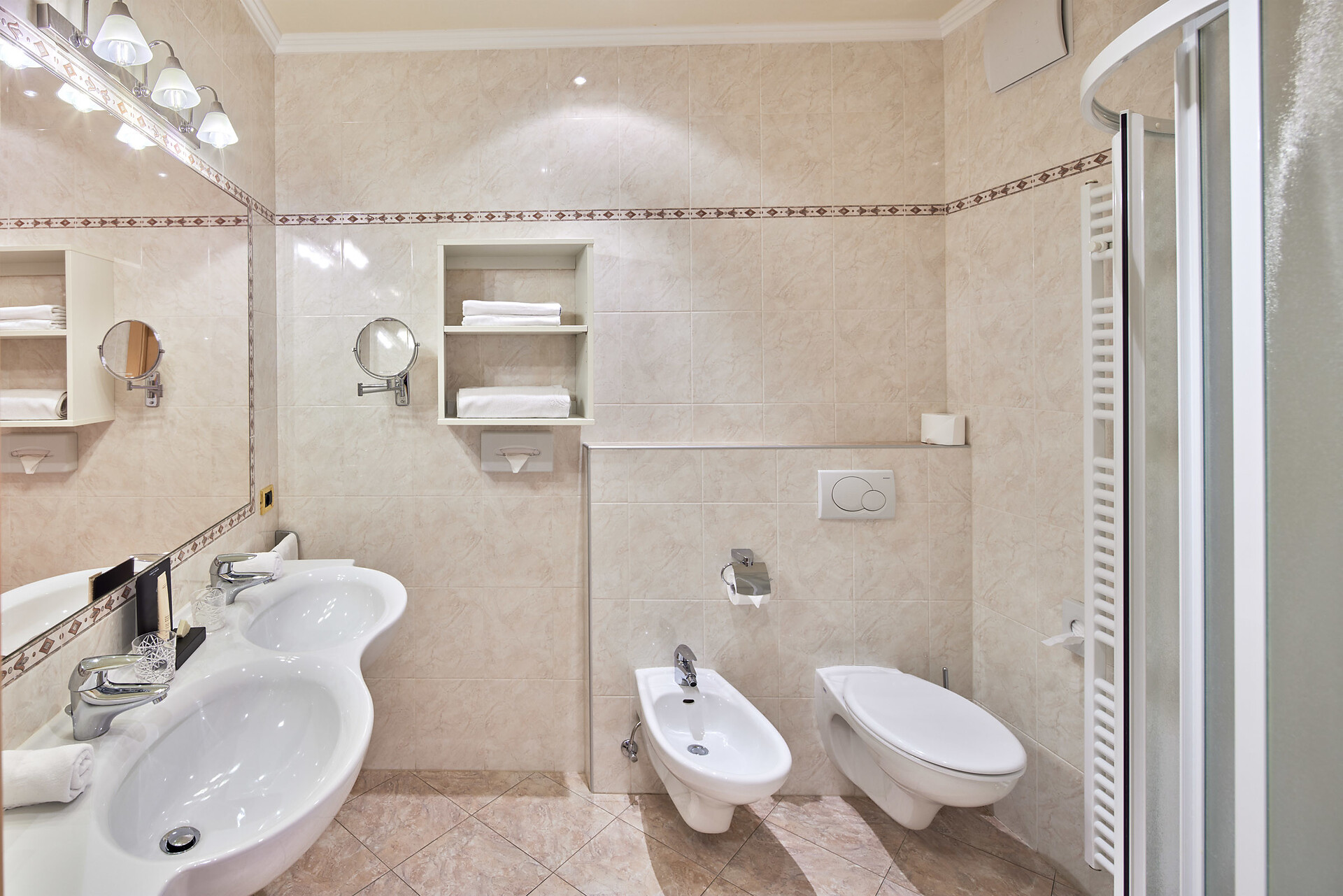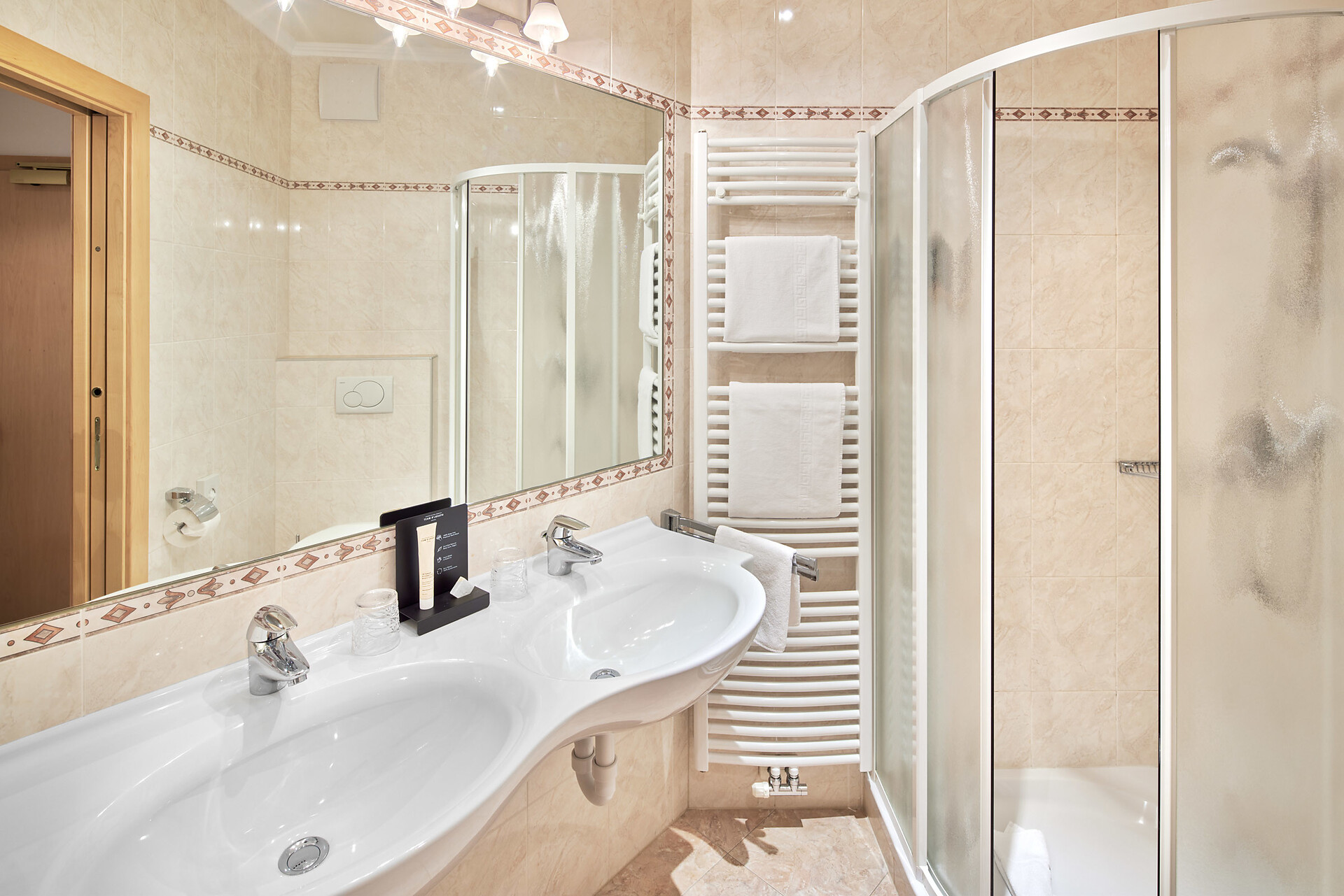 Suite, Doppelbett, Babybett, Bettsofa, Balkon, Klimaanlage, Allergikerzimmer, Minibar, Safe, Dusche / Bad, Separates WC, Bidet, Haarfön, Bademantel, TV, Satellit/Kabel, WLAN, Panoramablick, Südseite
