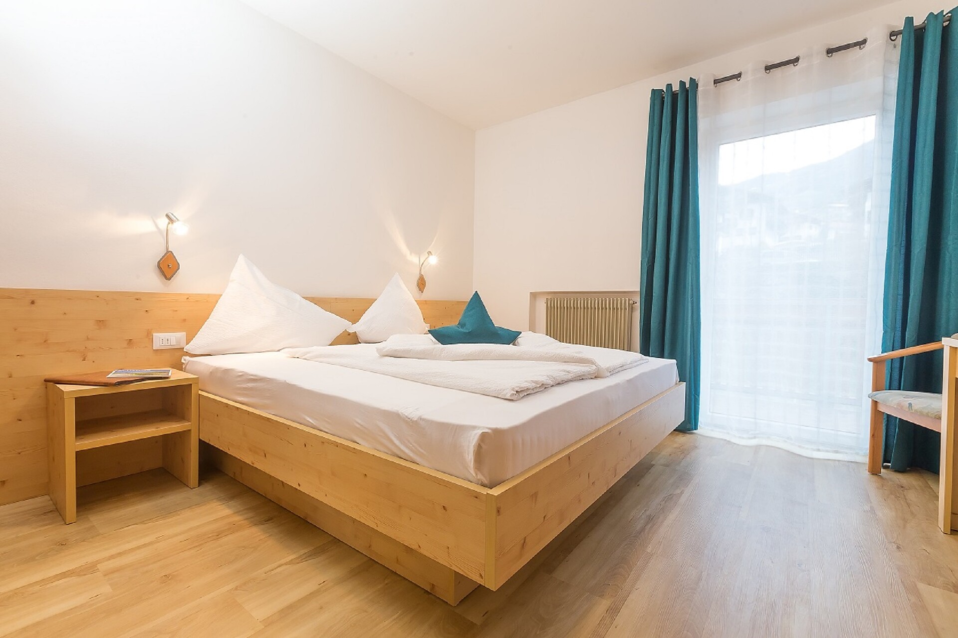 Doppelzimmer zur Nord-Ostseite mit Balkon und Morgensonne sowie Blick auf den Hausberg "Hönigspitze"