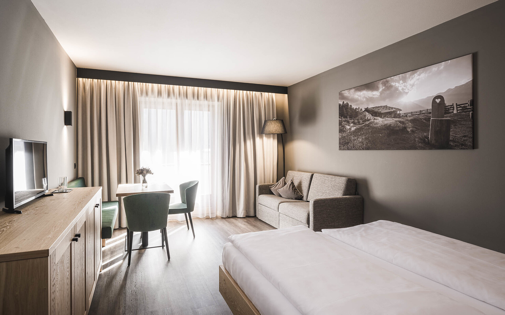 Unsere 29 Zimmer bieten ausreichend Platz und sind mit viel Holz ausgestattet, um den Wohlfühlfaktor zu erhöhen. Neben wichtigen Annehmlichkeiten wie Dusche, WC, Sat-TV, Safe, Fön und Internetanschluss, haben alle unsere Zimmer auch einen schönen Balkon, von dem aus Sie eine herrliche Sicht auf die heimische Bergwelt genießen.