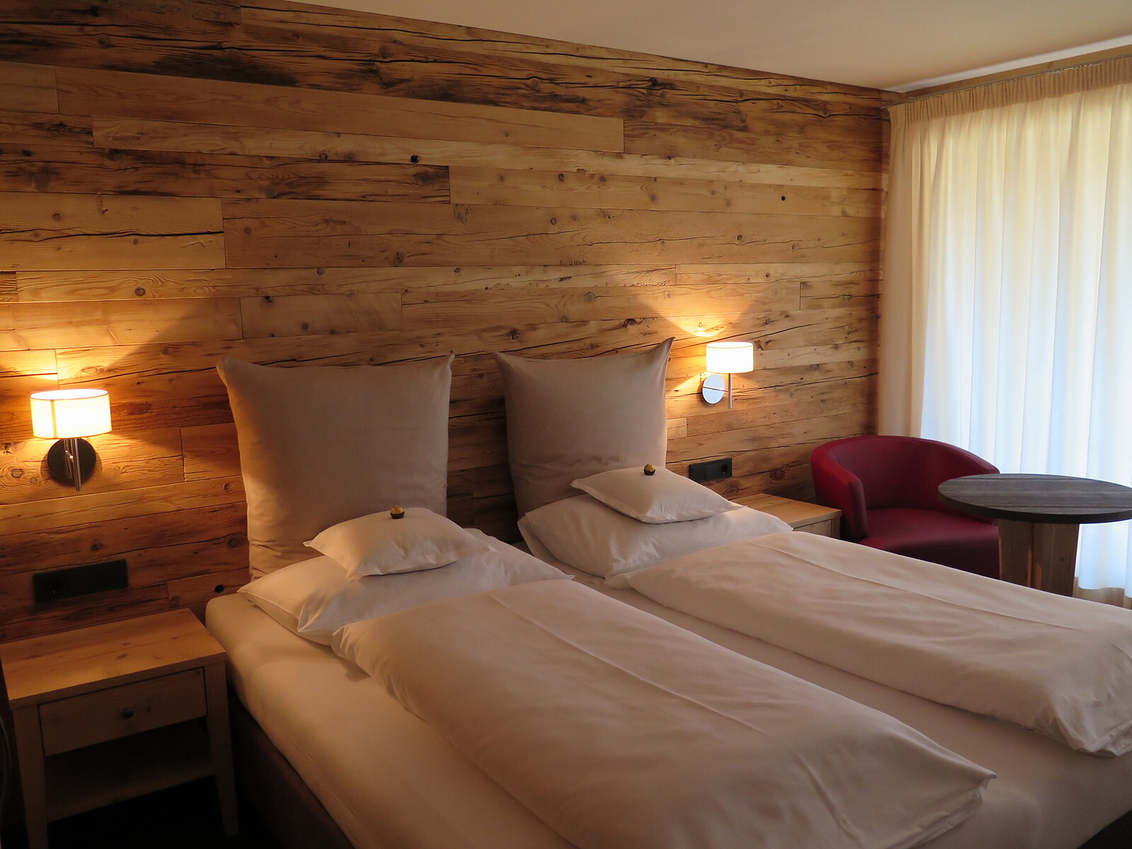 Standard-Doppelzimmer mit allen Basics. Gemütlich eingerichtet mit komfortablen Boxspring-Betten und Vintage-Badezimmern