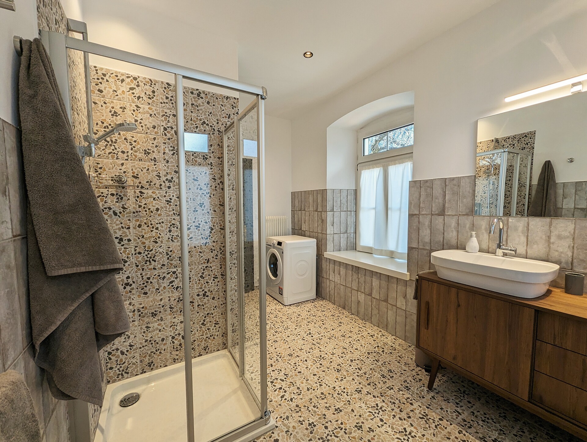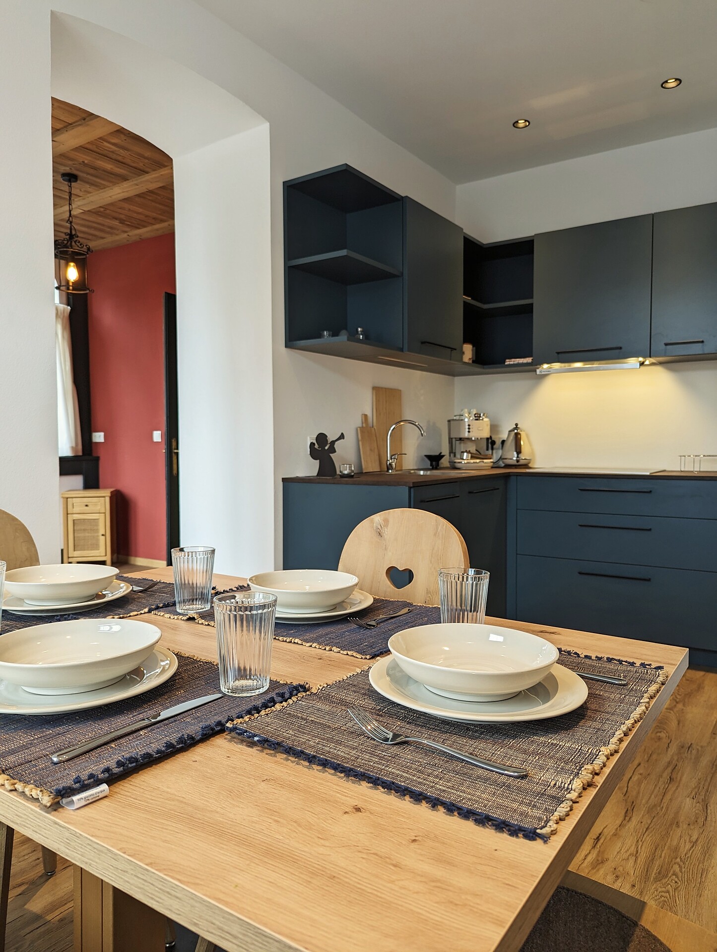 Doppelbett, Bettsofa, Klimaanlage, Bettwäsche vorhanden, Separate Küche, Wohnküche, Kaffeemaschine, Geschirrspülmaschine, Mikrowelle, Geschirrausstattung, Dusche/Bad, Bidet, Haarfön, TV, WLAN, Haupthaus
