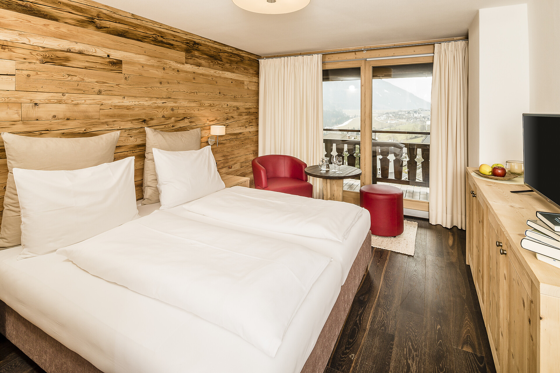 Doppelzimmer, Doppelbett, Babybett, Balkon, Safe, Dusche / Bad, Haarfön, TV, Satellit/Kabel, WLAN, Haupthaus, Panoramablick