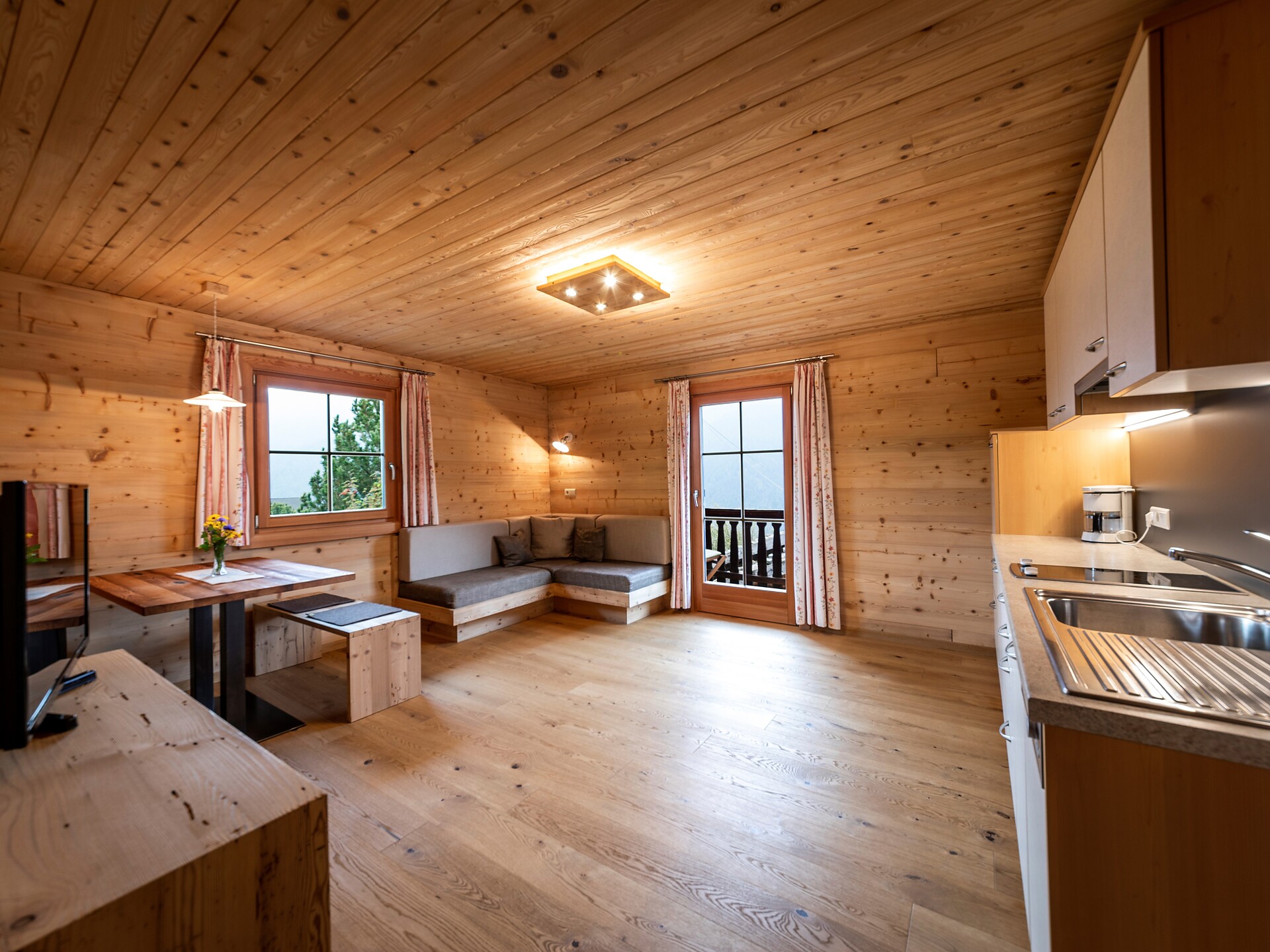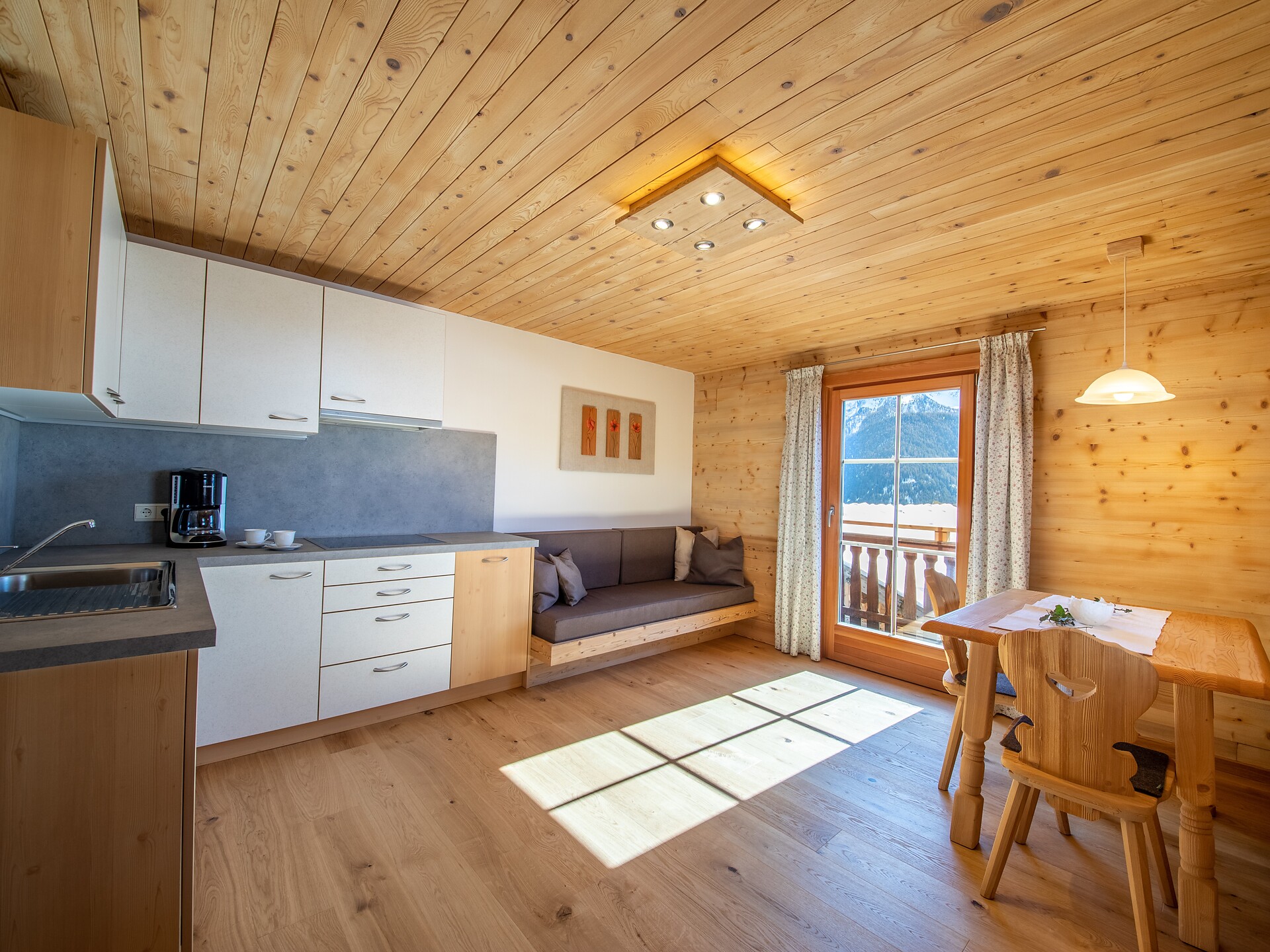 Doppelbett, Etagenbett, Balkon, Garten, Separater Wohnraum, Bettwäsche vorhanden, Nichtraucher-Apartment, Wohnküche, Kaffeemaschine, Geschirrspülmaschine, Geschirrausstattung, Kochfeld, Backrohr, Dusche/Bad, Haarfön, Badetücher, TV, Satellit/Kabel, WLAN, Endreinigung inbegriffen, Haupthaus, Panoramablick, Südseite