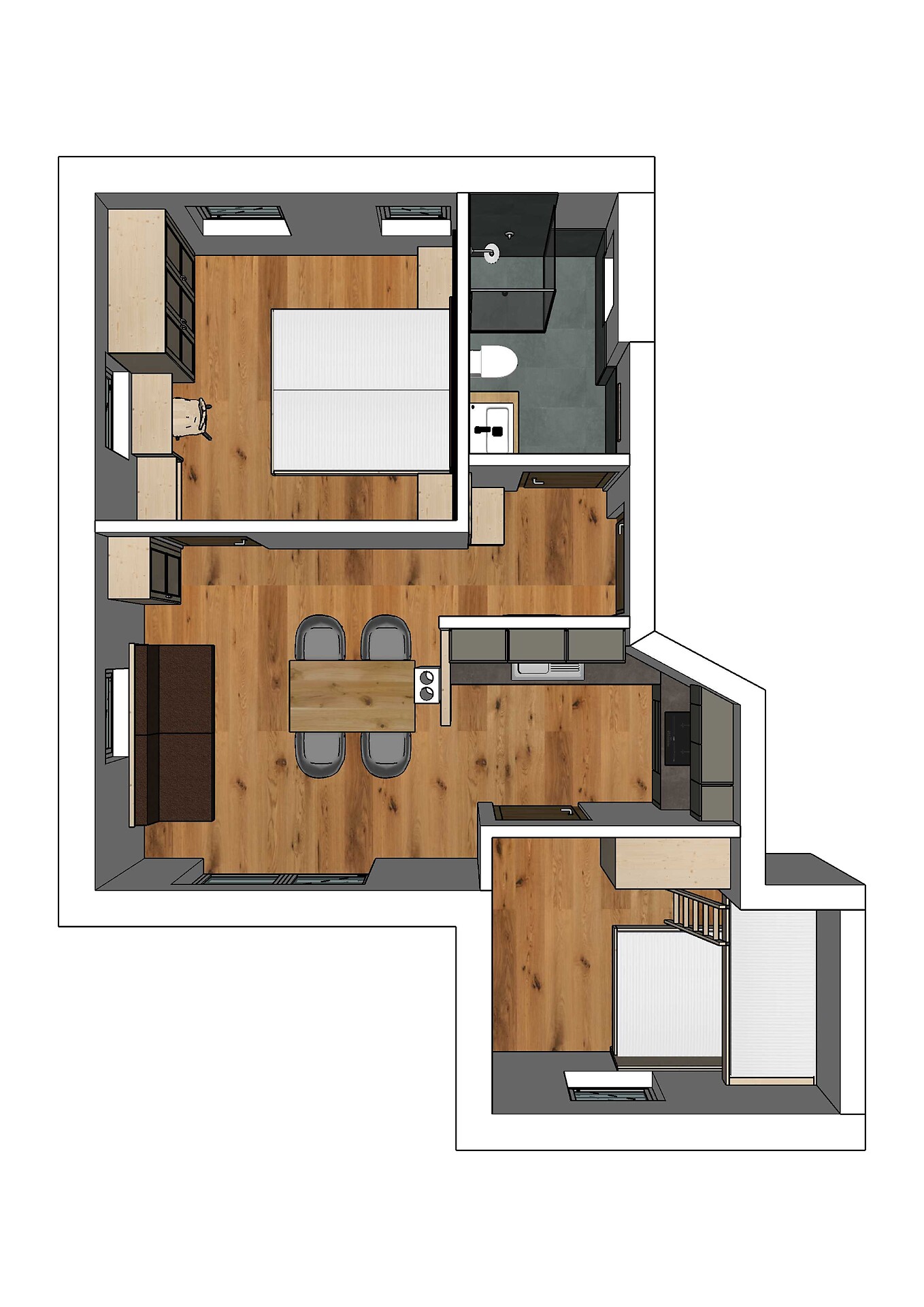 Wohnung mit 2 getrennten Schlafzimmern, Wohn-Esszimmer und getrenntem Badezimmer