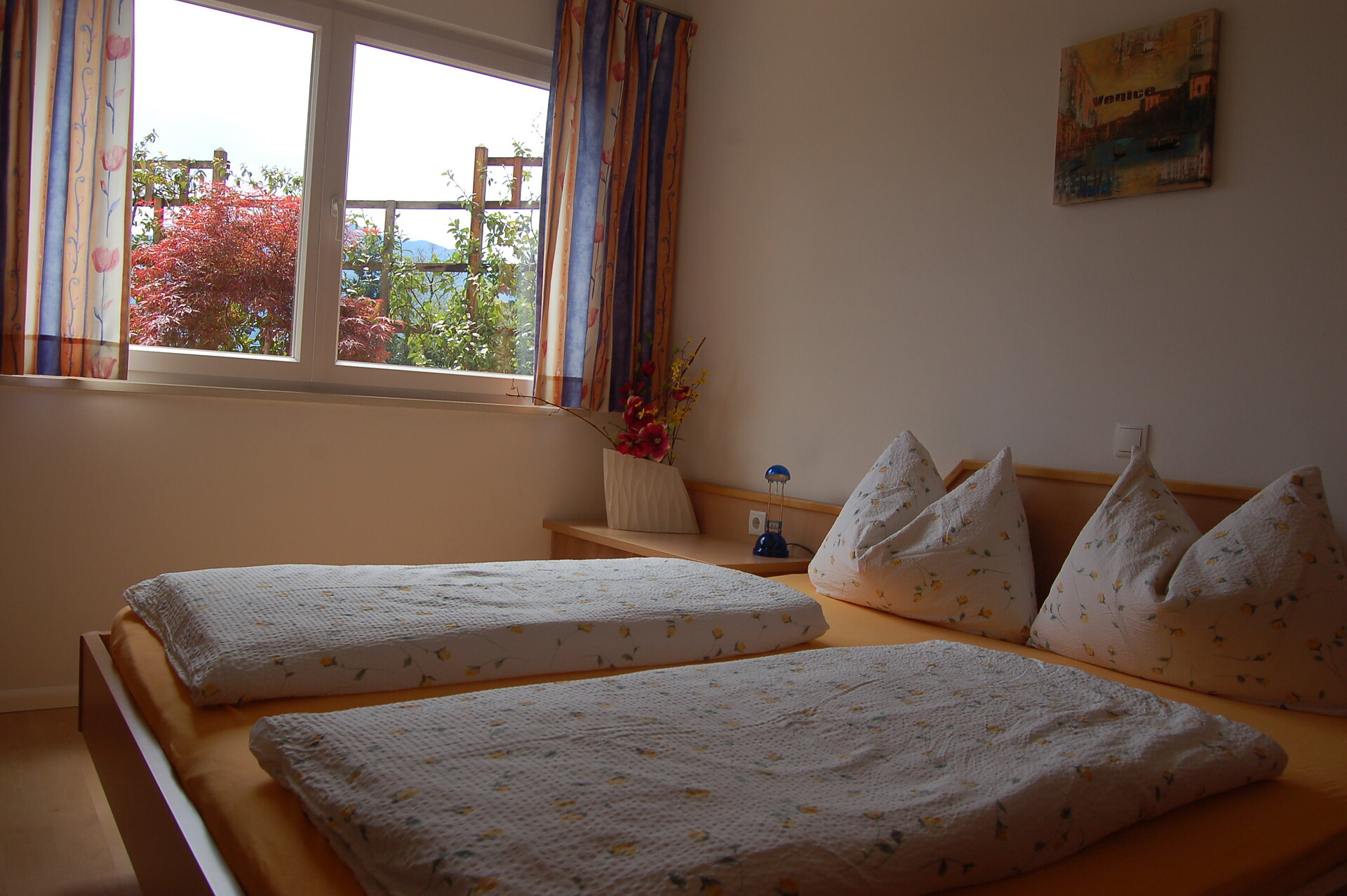 Doppelbett, Terrasse, Garten, Bettwäsche vorhanden, Wohnküche, Kaffeemaschine, Geschirrspülmaschine, Geschirrausstattung, Kochfeld, Wasserkocher, Dusche/Bad, Haarfön, Waschmaschine im Apartment, TV, WLAN, Haupthaus, Südseite