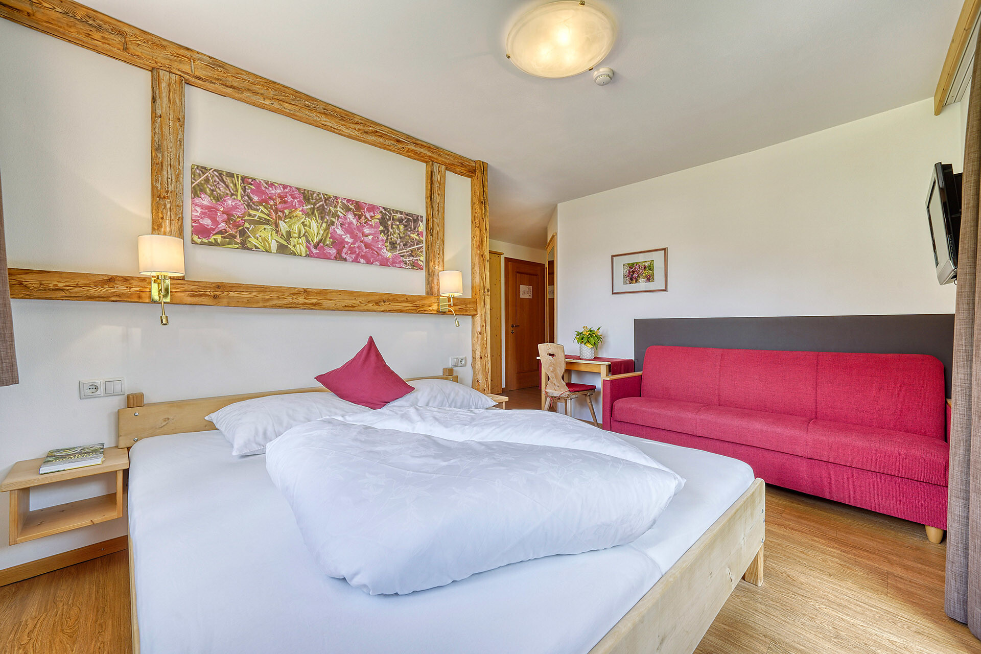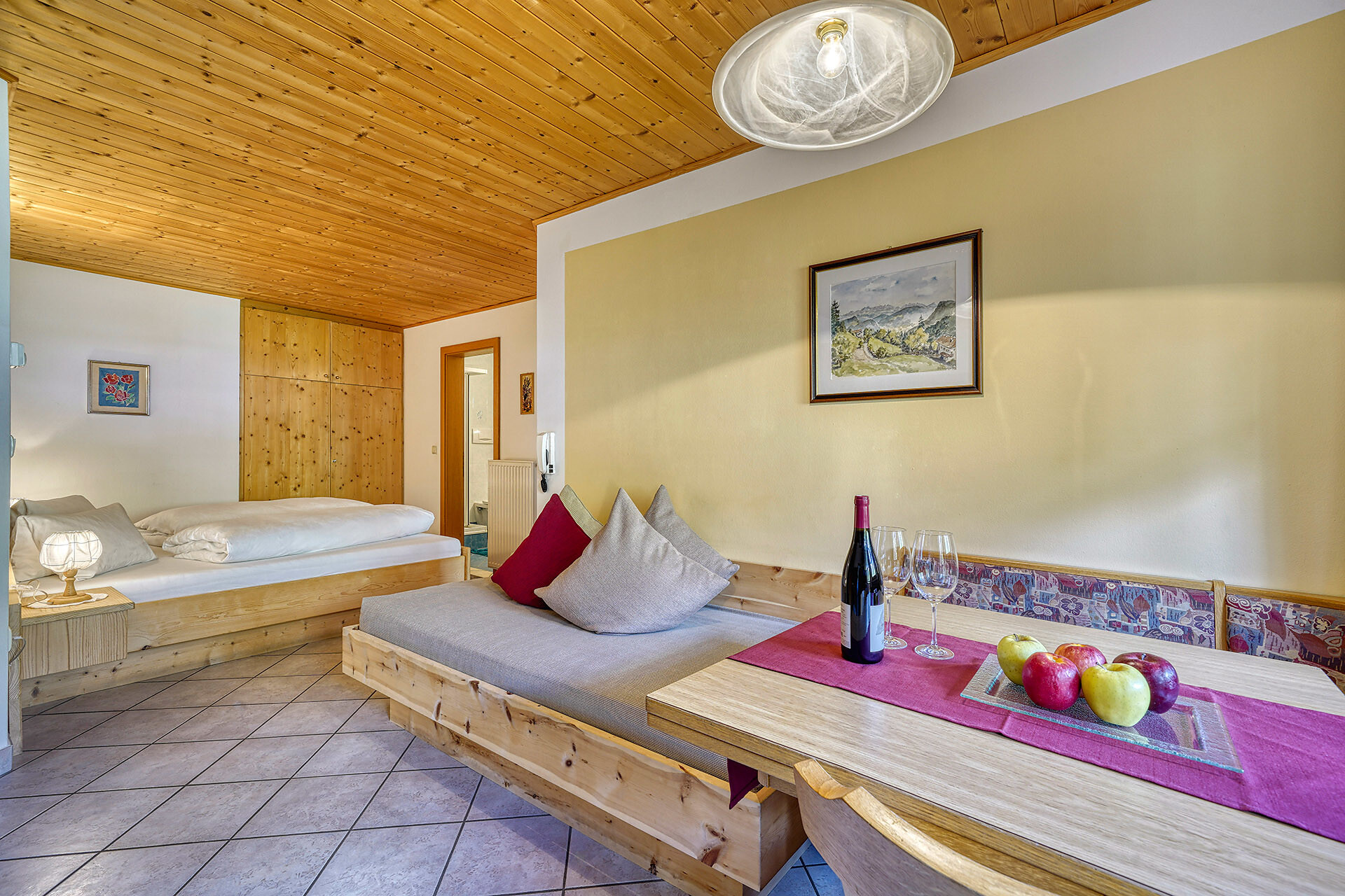 Doppelbett, Zustellbett, Babybett, Bettsofa, Balkon, Terrasse, Separater Wohnraum, Bettwäsche vorhanden, Safe, Wohnküche, Kaffeemaschine, Geschirrausstattung, Kochfeld, Dusche/Bad, Bidet, Haarfön, Badetücher, TV, Satellit/Kabel, WLAN, Reinigung auf Anfrage, Haupthaus, Panoramablick, Südseite