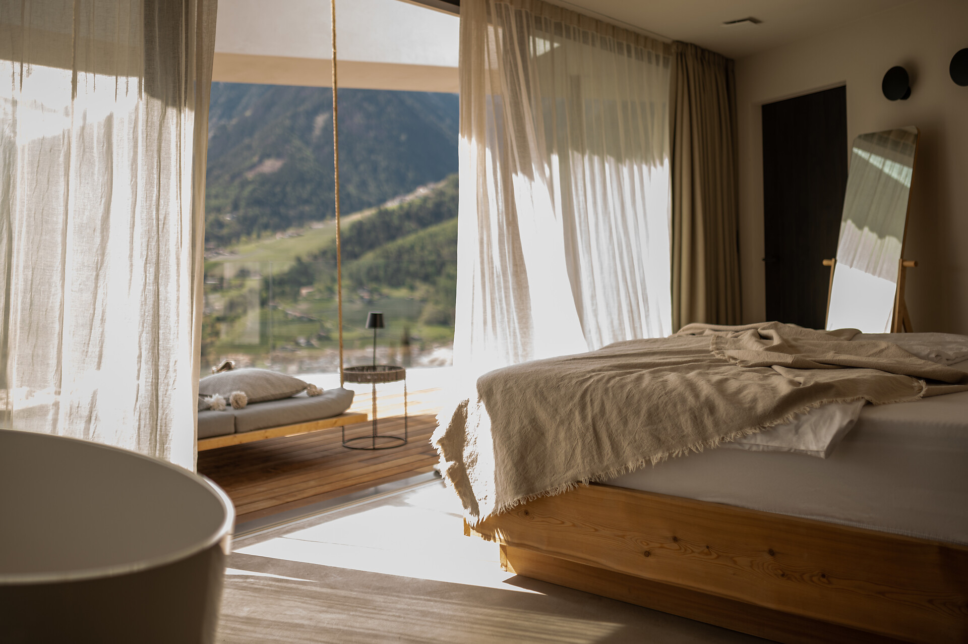 Die View-Houses verzaubern mit Ihrer exklusiven Lage und dem einmaligen Rundumblick auf das umliegende Bergpanorama und den Meraner Talkessel. Die großen Fensterflächen, die eleganten Sonnenterrassen mit Glasbrüstung und das moderne Desgin machen das Chalet Goyen & die Villa Goyen zu einem exklusiven Urlaubsdomizil, das höchste Ansprüche an Behaglichkeit, Komfort und Lage erfüllt.