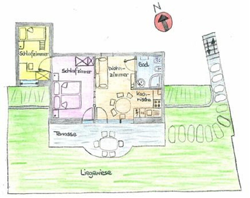 Ausstattung: Doppelbett, Doppelschlafcouch, Terrasse, Garten, Allergikerzimmer, Bettwäsche vorhanden, Wohnküche, Kaffeemaschine, Geschirrspülmaschine, Elektroherd, Mikrowelle, Geschirrausstattung, Wasserkocher, Backrohr, Dusche/Bad, Haarfön, Badetücher, Waschmaschine im Apartment, TV, Satellit/Kabel, WLAN, Reinigung auf Anfrage, Haupthaus, Panoramablick, Südseite