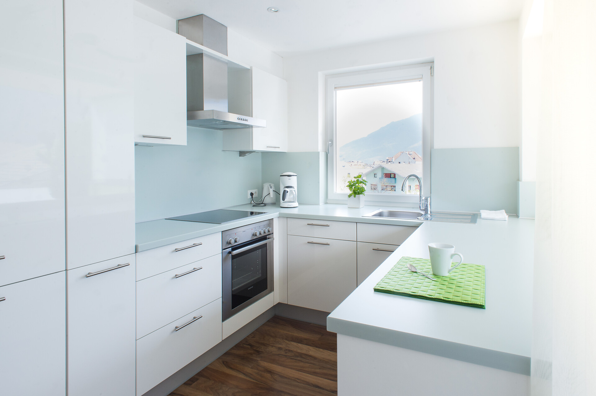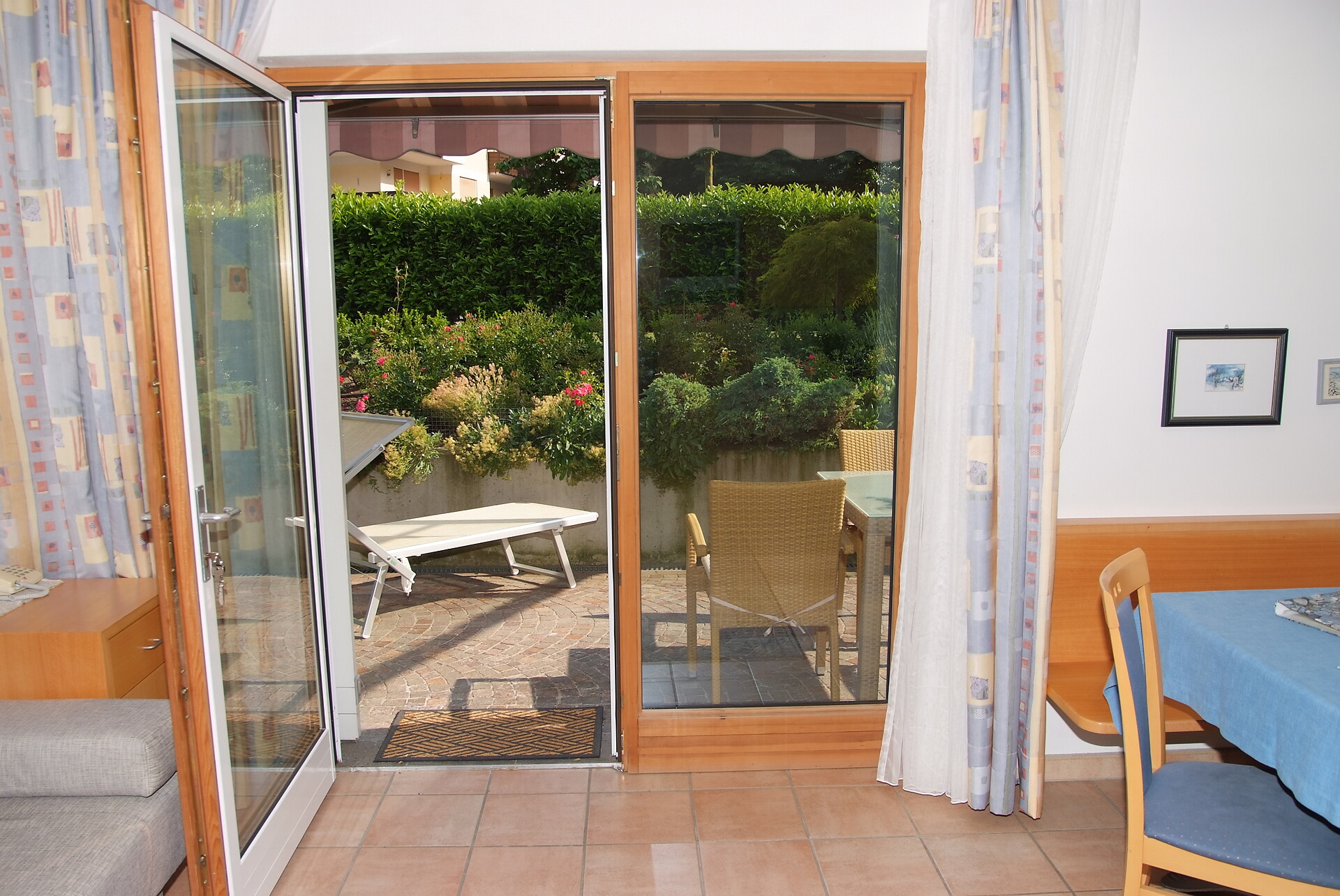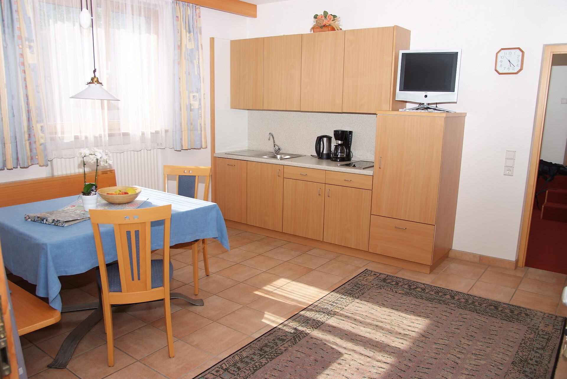 Ausstattung: Doppelbett, Balkon, Garten, Bettwäsche vorhanden, Safe, Wohnküche, Kaffeemaschine, Geschirrspülmaschine, Elektroherd, Mikrowelle, Geschirrausstattung, Dusche/Bad, Haarfön, Badetücher, TV, Satellit/Kabel, WLAN, Reinigung auf Anfrage, Haupthaus, Südseite